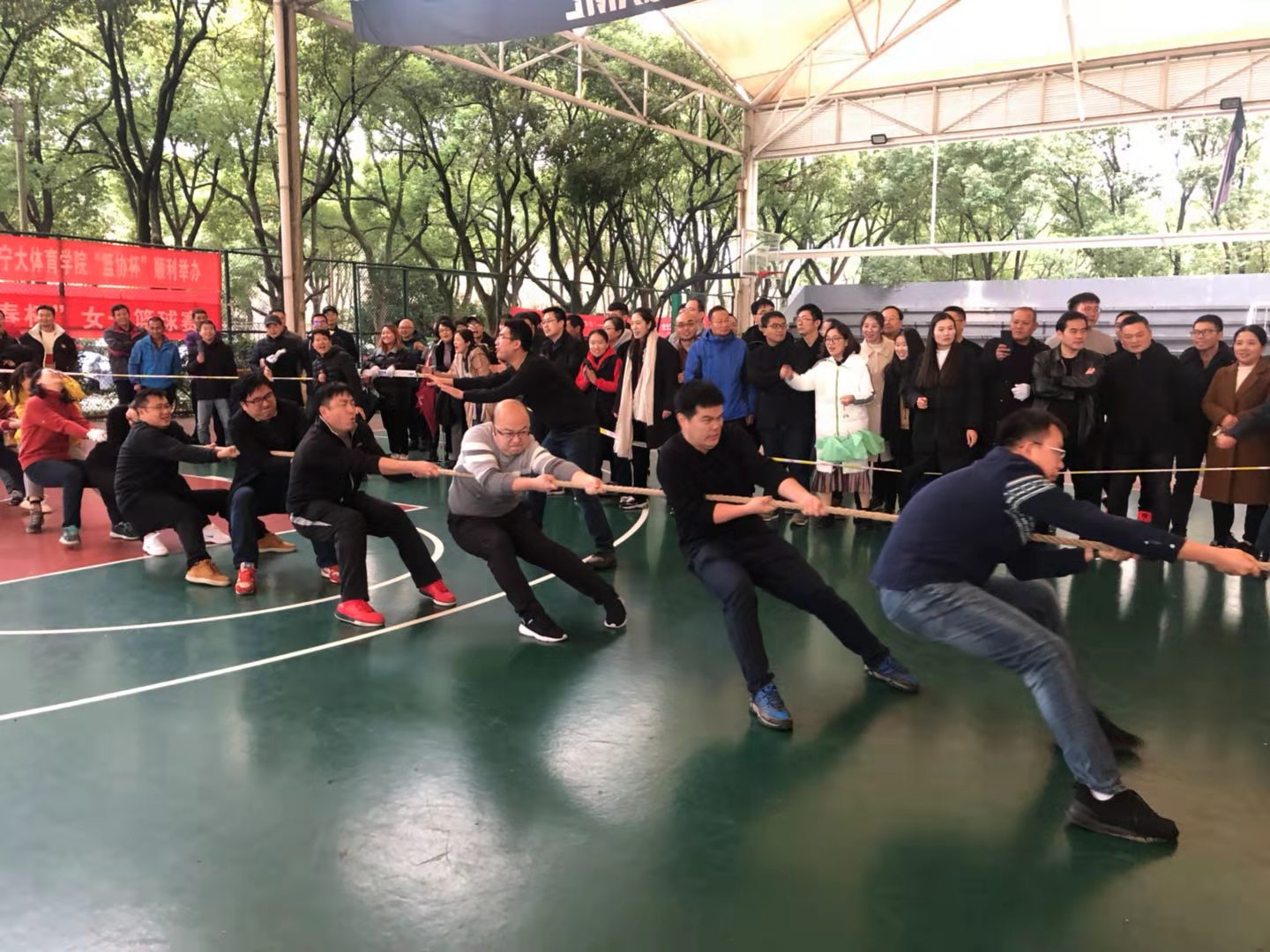 纵观两天的比赛,全院上下都积极参与:上场队员气势如虹,不到最后一刻决不放弃;院领导和很多老师都冒着严寒到赛场加油助威,声动全场;后勤保障充足,整个团队团结协作默契;正是依靠强大的团队凝聚力和战斗力,学院在激烈的角逐中一路高更猛进,最终创造了历史。比赛结果极大鼓舞了士气,提升了学院凝聚力,希望在2020年我院的拔河成绩和各方面都能更上一层楼。
