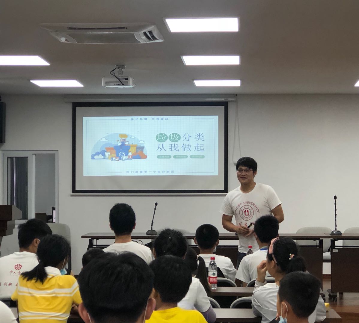 “益农护卫”实践团在实践指导老师的带领下,深入镇海区蛟川街道石塘下村社区为孩子们开展了垃圾分类宣讲小课堂。