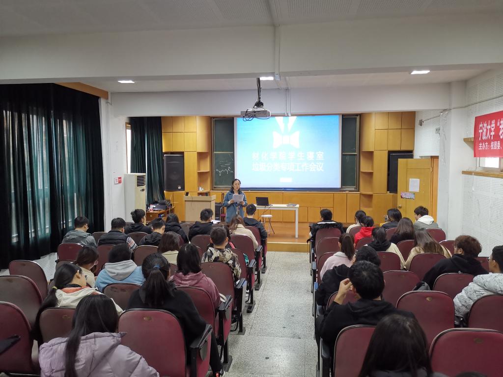 学生寝室卫生检查工作条例》,强调垃圾分类作为寝室卫生检查内容纳入学生非学业因素评奖、评奖评优和党员发展等评价指标,希望同学们高度重视;同时就学校学生生活垃圾分类检查工作各时间节点做专项布置,明确学院将组织小分队开展垃圾分类宣传和寝室卫生检查,确保每个垃圾桶张贴标识。会上,辅导员结合案例,就生活中容易错误分类的垃圾作细致讲解,并要求各班生活委员把垃圾分类要求传达到班级每位同学。