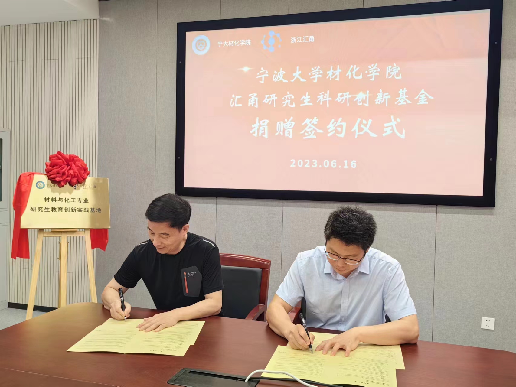 据悉,学院和浙江汇甬新材料有限公司共建材料工程与化工专业研究生创新教育实践基地。汇甬公司捐资30万元,每年10万元设立“汇甬研究生科创基金”,用于支持研究生开展创新创业研究活动,推进专硕研究生面向企业需求开展科学研究和学习应用。