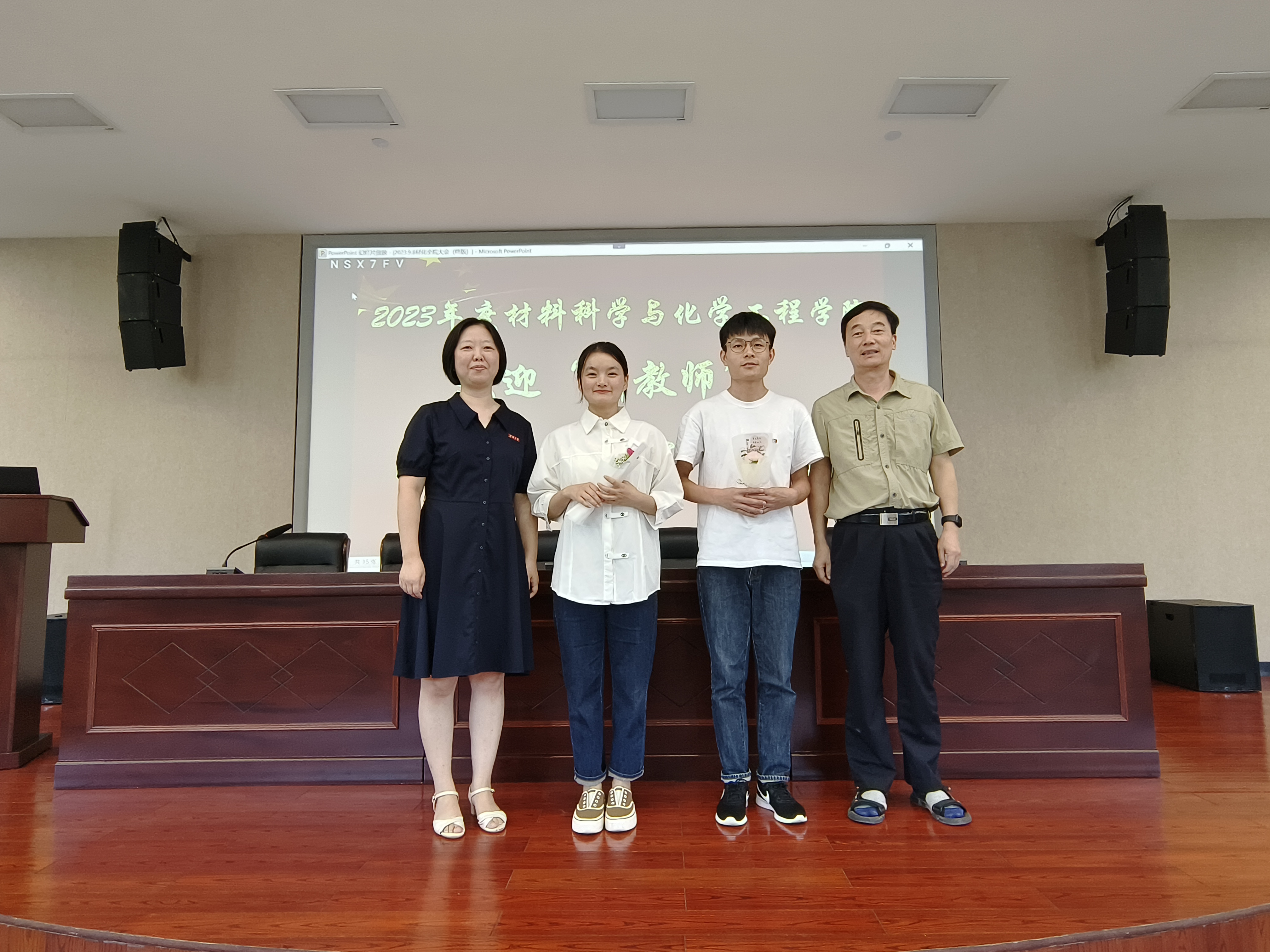 会上,陶娟首先对入职的新教师表达了热烈的欢迎,希望新教师能快速融入色情网址大全 ,转变角色适应新要求,在学院能够有新担当、新作为。院长和书记分别为新入职教师别上校徽,送上鲜花。随后,一同回顾了2023年上半年教职工校级以上荣誉获得情况,并对2023年度的教师锋领党员、优秀班主任、最美材化人等30余位教师进行了表彰,学院领导为他们颁发奖杯。