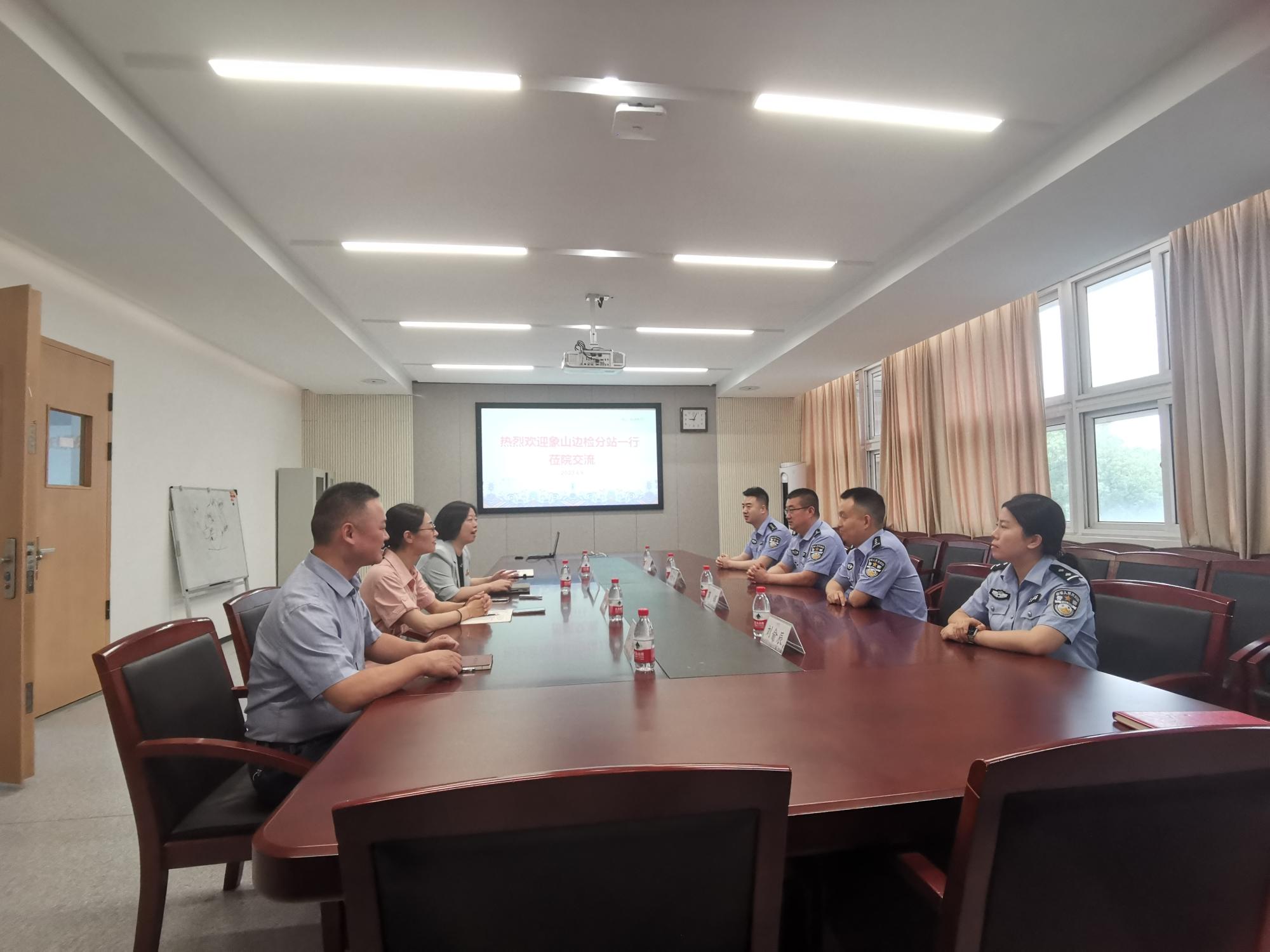 6月6日上午,象山边检分站党支部书记余胜利、站长蒋辉一行到色情网址大全 交流,学院党委书记陶娟、副书记尹慧以及相关教师参与座谈。