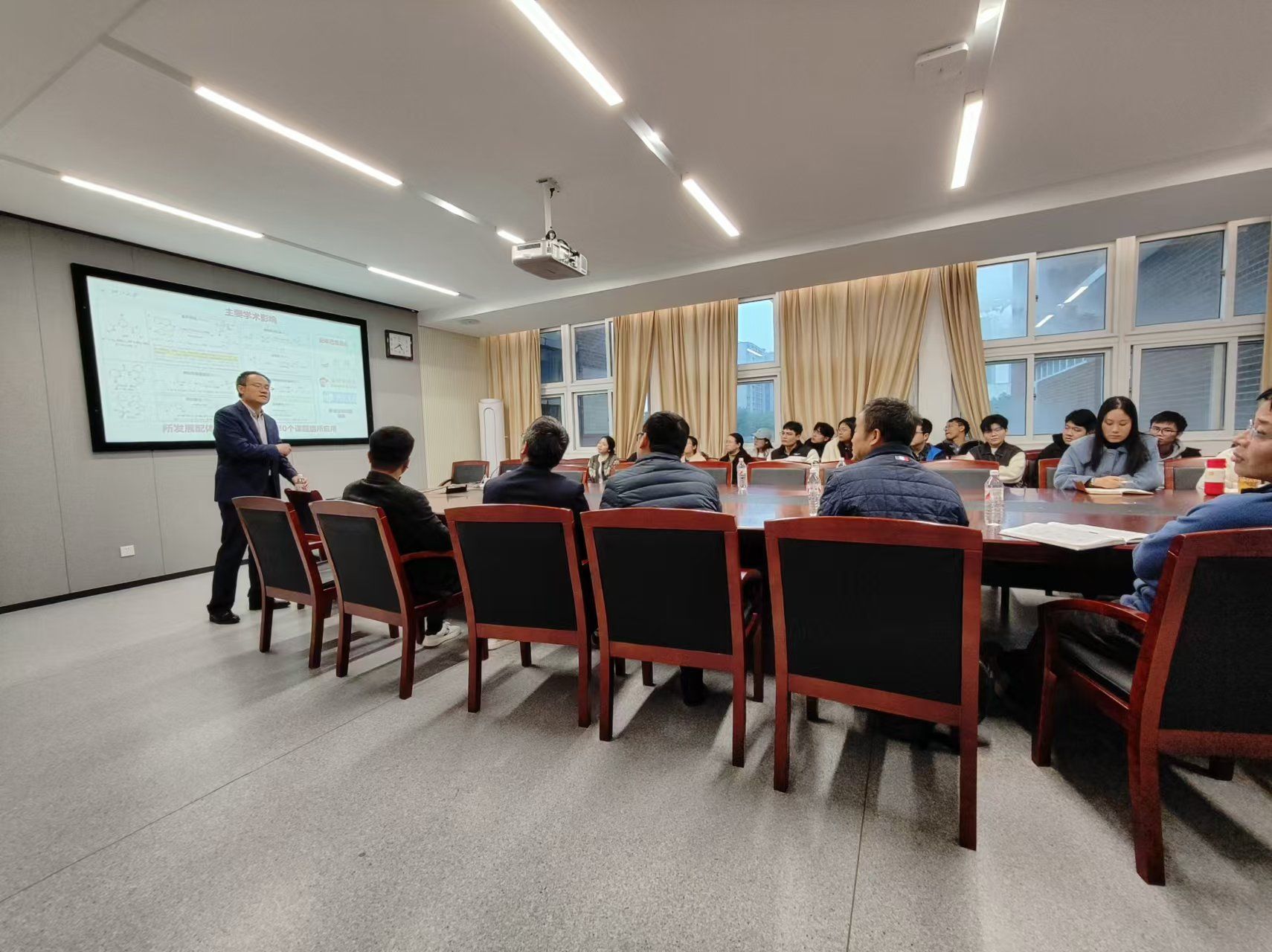学院师生对精彩的报告反响热烈,227会议室内座无虚席,报告后的提问交流环节气氛热烈。