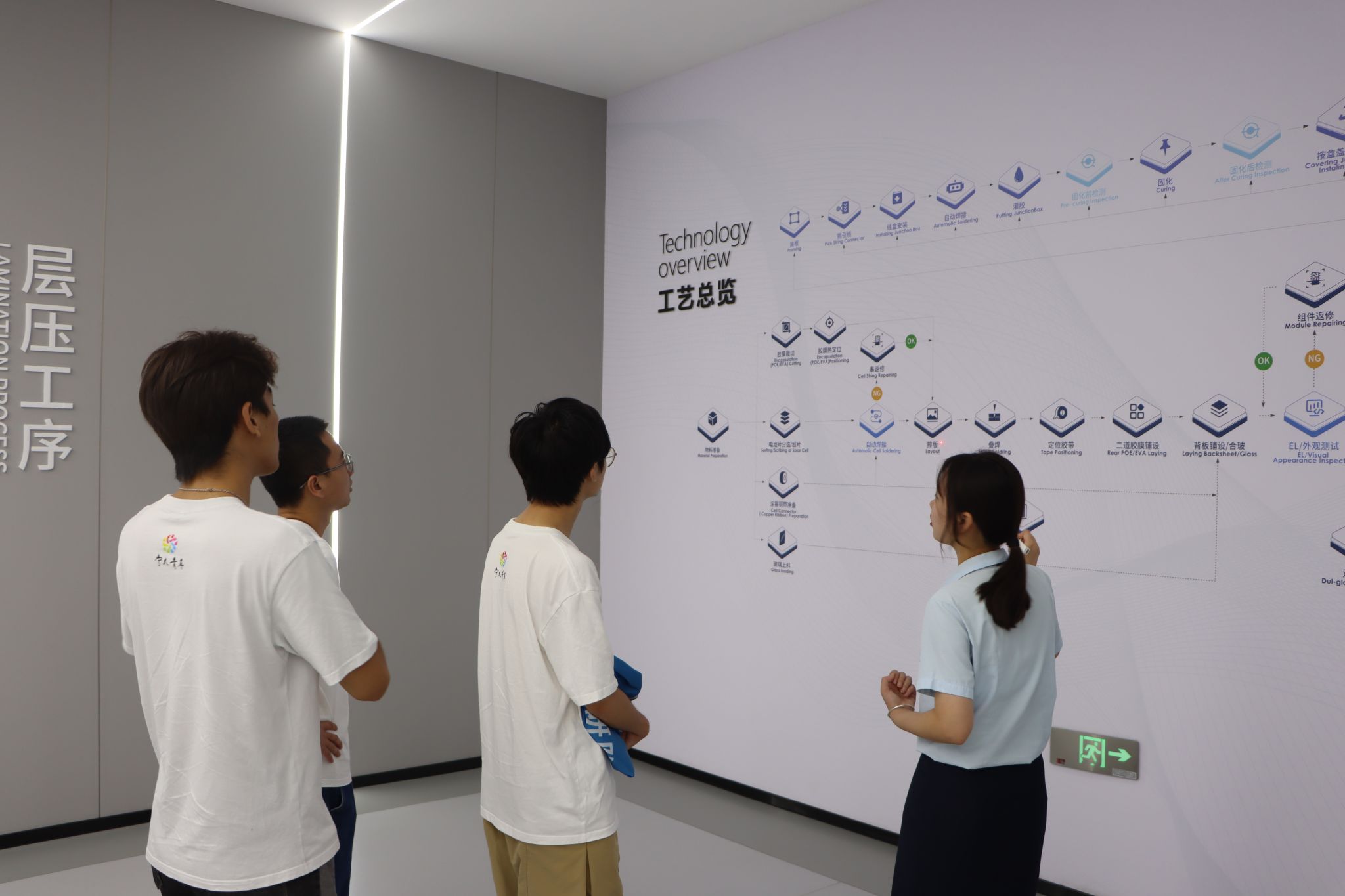 在公司科研人员的介绍下,同学们了解光伏发电领域新趋势,以及光伏材料的生产工艺、技术路线、产品性能等。晶科能源拥有N型TOPCon钙钛矿叠层电池,其最高转换效率33.24%,当技术数据通过具象化的产品呈现在眼前,同学们大为震撼。此外,公司应用在宁波-舟山港的项目,也让同学们了解到当下主流的储能技术产品。