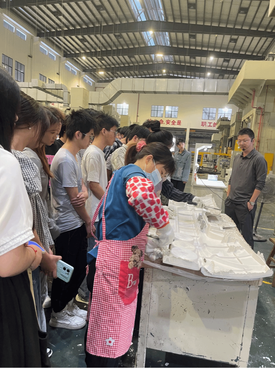 的学生,余经理首先在生产车间介绍了高精度液压装置,并带领学生参观BMC团状热固性模塑料压制成绝缘予以及SMC片状模塑料压制成汽车配件的过程。随后,同学们进入样品室,直观地感受了华缘的发展历程、前沿技术以及“复合材料应用完美方案缔造者”的愿景。华缘产品在电力、通信、轨道交通、汽车等多个领域的应用,令同学们叹为观止。最后,在工作人员的带领下,同学们进入研发中心,参观了电气实验室、燃烧/耐候实验室、力学实验室等。