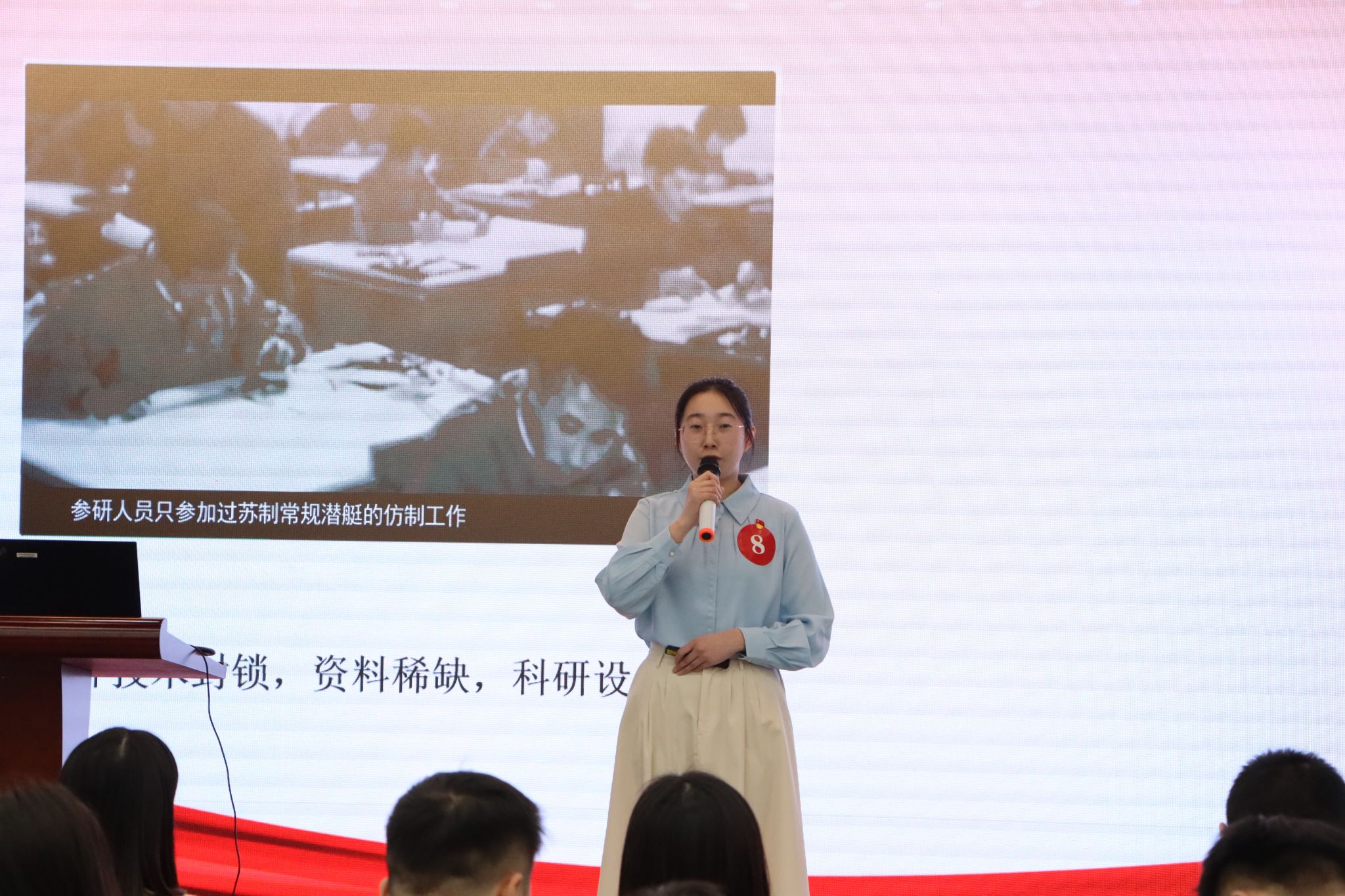 活动现场,2024年“宁大潮音”思政微课学生组一等奖获得者沈栩帆同学应邀作赛前展演。他以“三封书信话信仰”为题,通过分享革命年代裘古怀的绝笔信、建设年代郑哲敏的归国信、新时代郭丽洁的报告信,深情讲述了青春与时代的紧密联系,激发了在场师生对于新时代青年使命与担当的深切共鸣,为大赛开幕营造了良好氛围。