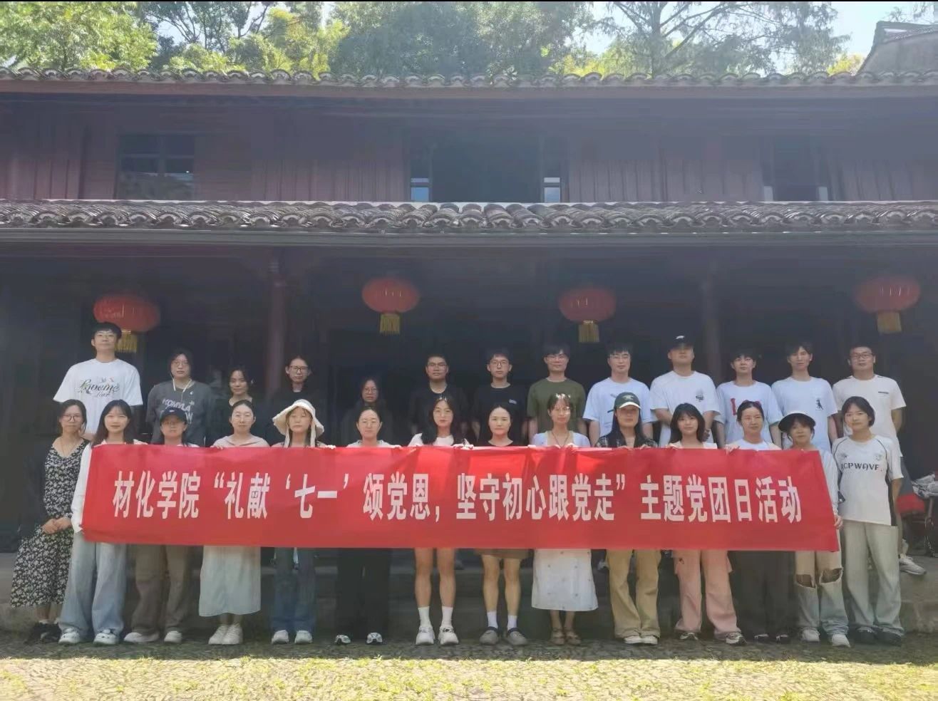 为庆祝中国共产党成立104周年,7月3日,材化学院组织开展“礼献‘七一’颂党恩,坚守初心跟党走”主题党团日活动,研究生无机材料党支部、研究生能源材料与工业催化党支部联合24级研究生化学班团支部近30人参与。