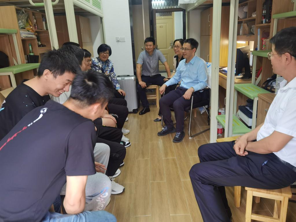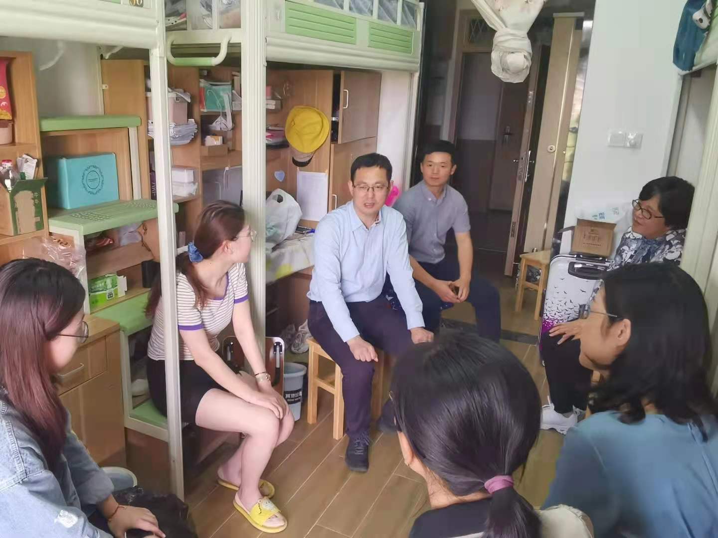童晓晖分别走访了北区1#楼女生宿舍和2#楼男生宿舍,了解同学们的生活、学习、住宿情况。童晓晖说今年是建党100周年,同学们遇到了一个非常好的时代,站在“两个百年”的交汇点,要规划好自己的大学生涯。