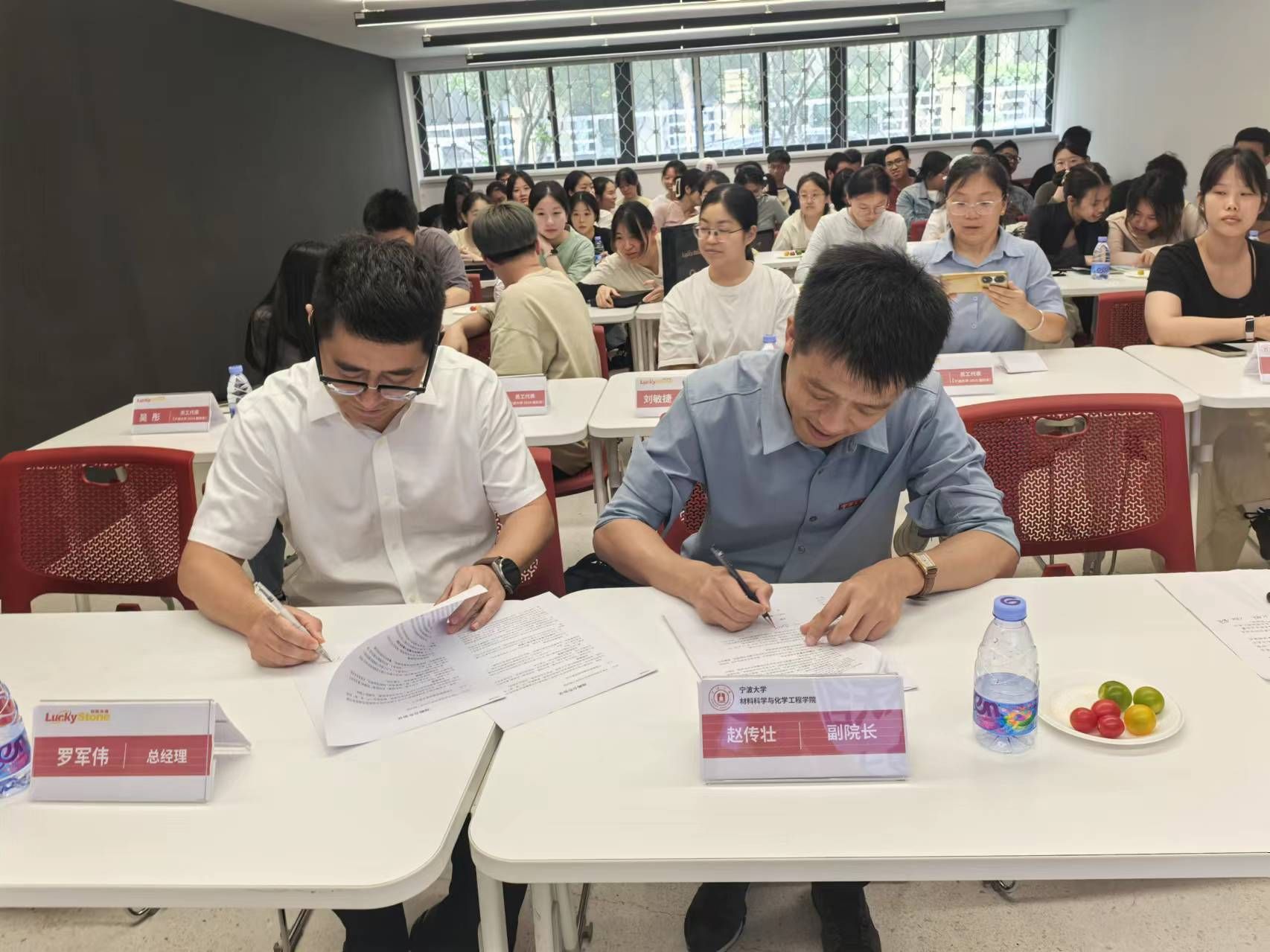 赵传壮与罗军伟签订实习基地共建协议,并举行了授牌仪式。随后公司负责人带领学院师生一行进行了参观。校企双方就集团校招需要、人才需求、教学实习具体事项等进行了深入的座谈交流。