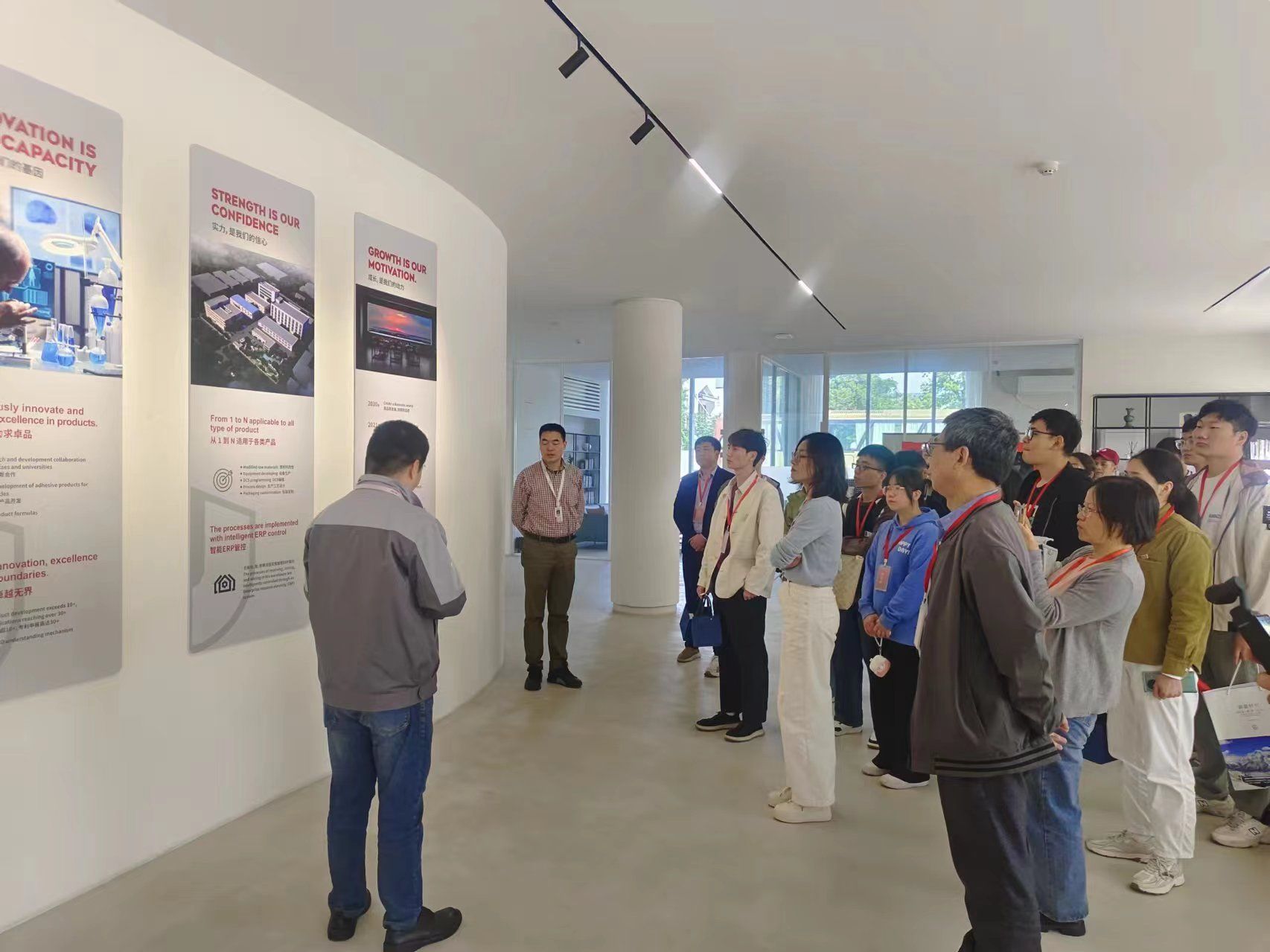 在公司相关负责人的带领下,材化学院师生一行参观了公司展厅、各部门和实验室听取了公司的详细介绍、成长历程、未来规划、员工晋升体系生活配套等具体情况,优秀校友郑志伟现身说法,讲述了在公司的成长经历和所思所得。公司总经理陈金才表示公司2024年将主要精力投入到管理创新、产品创新和品牌出海三个方向,创新和科技将是未来公司发展的重要支撑。公司特别需要也非常欢迎学院毕业生加入公司共同成长。随后,学院师生一行体验公司新产品——美甲甲片胶粘结,现场气氛热烈。校企双方围绕产学研合作进行亲切座谈,学生代表们围绕公司研发项目与自身学习科研方向的契合度以及公司对毕业生的能力素养要求等方面与公司负责人进行深入交流学生表示打开了思路、了解了产业,有助于更有针对性地提升专业和综合素质,更清晰地规划学业和职业发展,受益良多
