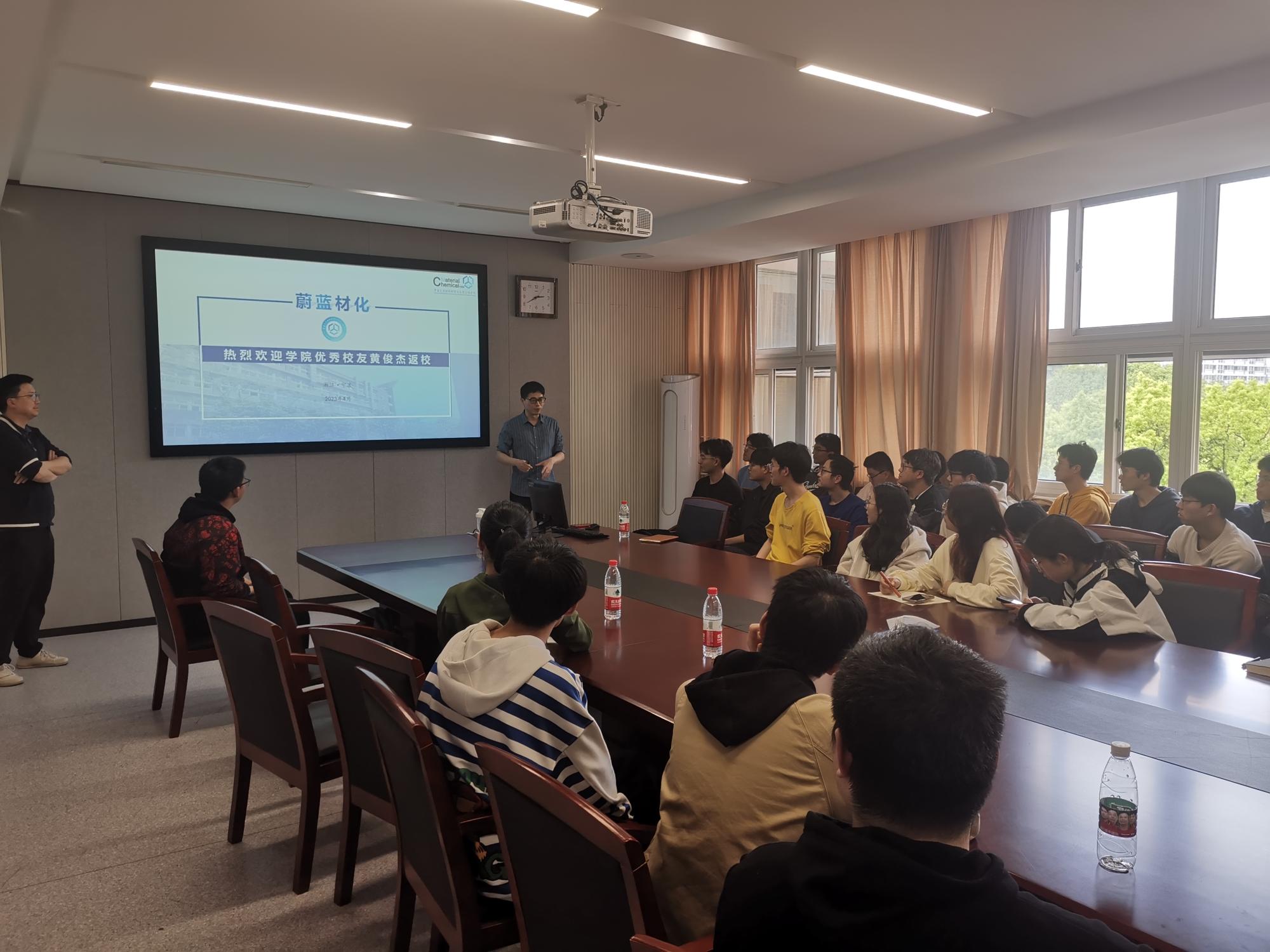 4月14日,材化学院2019级优秀校友黄俊杰应邀返校,与学院四十余位师生代表进行交流,介绍最新学术研究进展,分享个人职业体验。