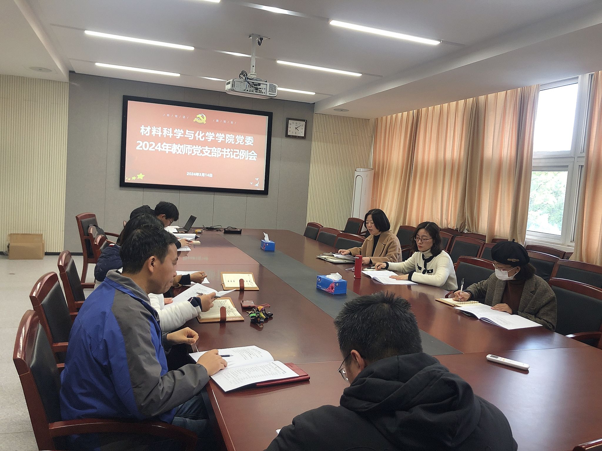 3月14日下午,材化学院党委在逸夫材化楼北楼227会议室召开新学期教师党支部书记工作例会,布置新学期党建工作。会议由党委书记陶娟主持,党委副书记尹慧、全体师生党支部书记、专职组织员、学生党建辅导员参加了会议。
