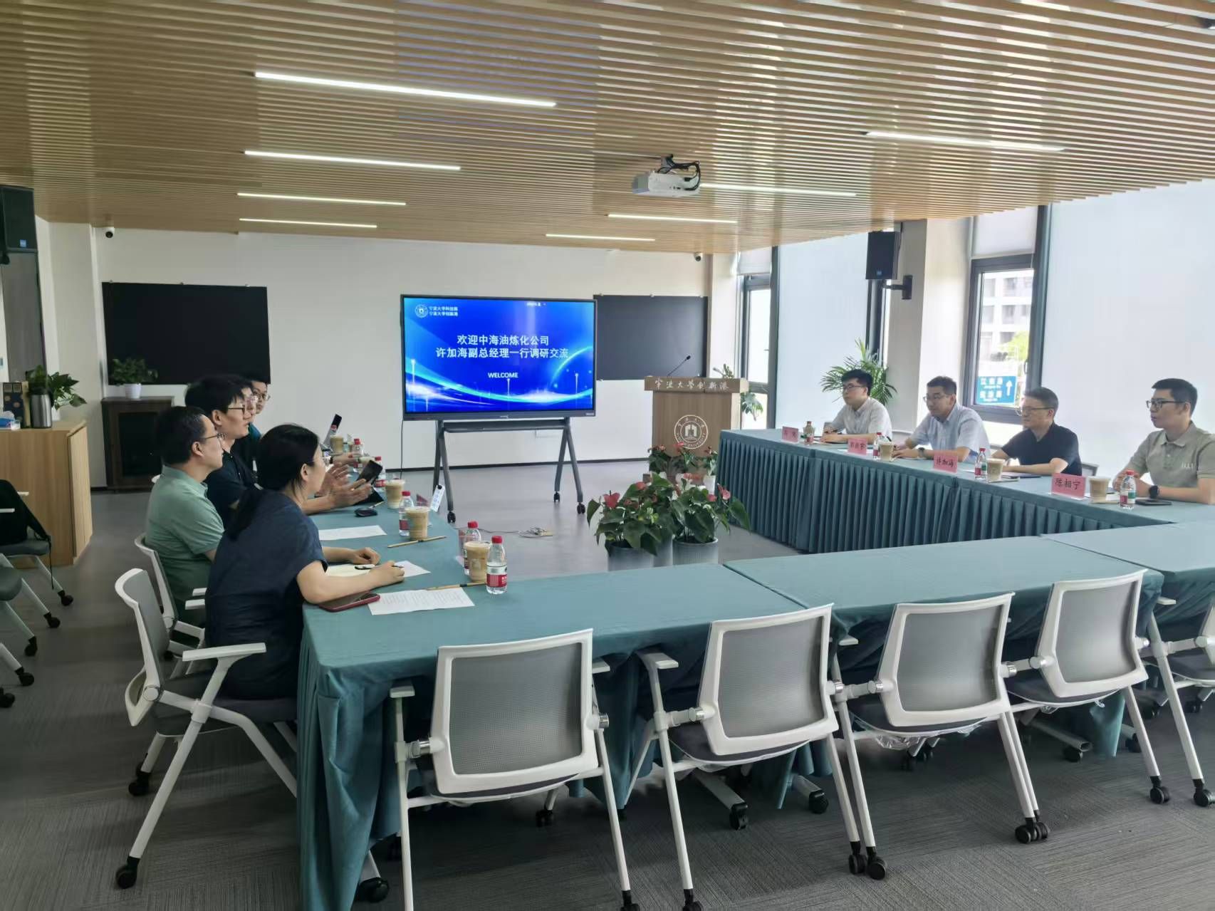 6月19日下午,中海石油炼化有限责任公司副总经理许加海一行莅临宁波大学创新港调研交流。宁波大学成果转移转化中心主任李砚硕、材化学院副院长周明炯、高分子材料研究所所长王宗宝等参与接待。