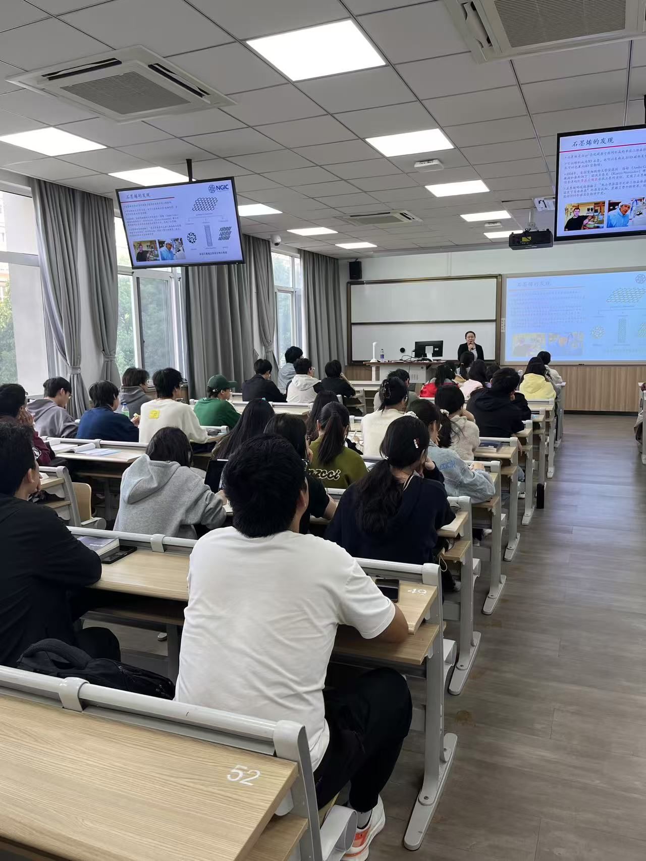 在讲座中,吴老师还特别强调了石墨烯材料在电子器件、新能源材料和医疗技术等领域广泛应用前景。通过案例分析,不仅拓展了学生的学术视野,也凸显了专业知识在现实生活和工业生产中的关键作用。