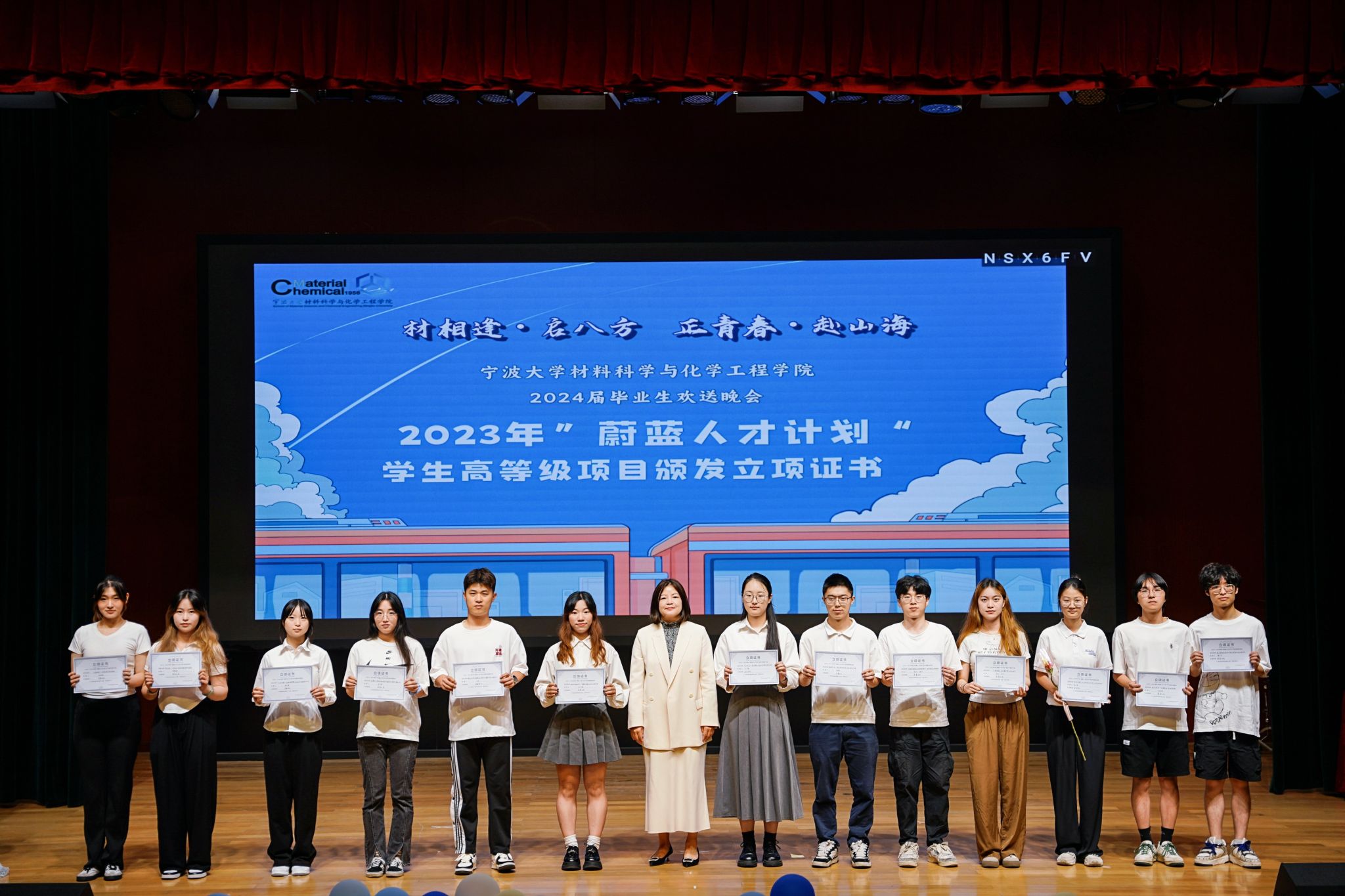 晚会现场,陈燕燕女士颁发“蔚蓝人才计划”项目立项证书。该项目由晶科能源赞助,院企合作、深化发展,体现了社会对教育事业的关怀以及学院对学生创新创业能力培养的高度重视。学院领导为材化学院校级优秀毕业生、省级优秀毕业生颁发荣誉证书、为校友联络员颁发聘书,激励更多材化学子用努力和奋斗,书写自己的青春华章,希望材化学子们不忘母校栽培,继续关心母校发展。