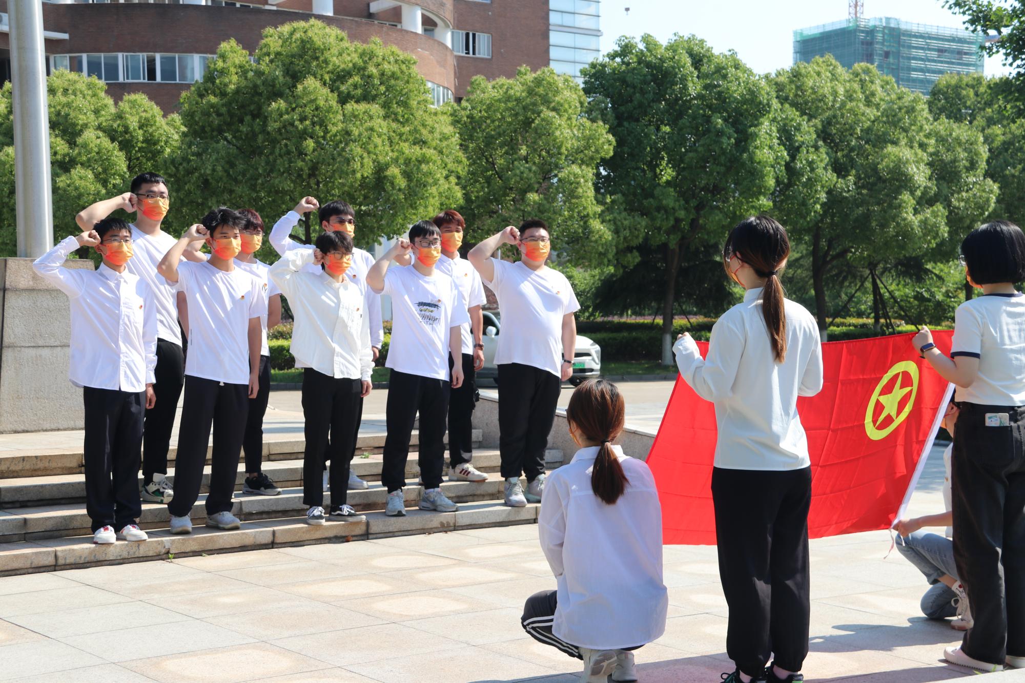 “我志愿加入中国共产主义青年团,坚决拥护中国共产党的领导,遵守团的章程,执行团的决议,履行团员义务,严守团的纪律,勤奋学习,积极工作,吃苦在前,享受在后,为共产主义事业而奋斗。”国旗下、团旗前,一阵阵铮铮誓言响彻云霄。