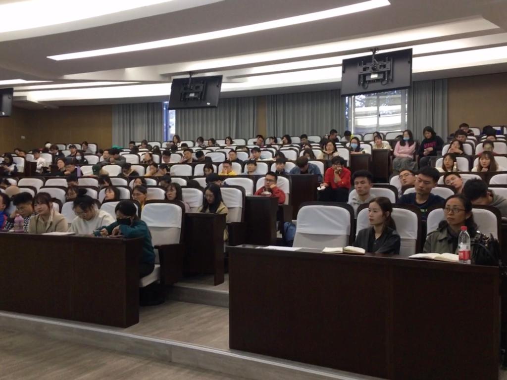 2005级优秀校友庄惠强。本次讲座由学院党委副书记朱燕老师主持,我院学工办辅导员及200多名学生参加。