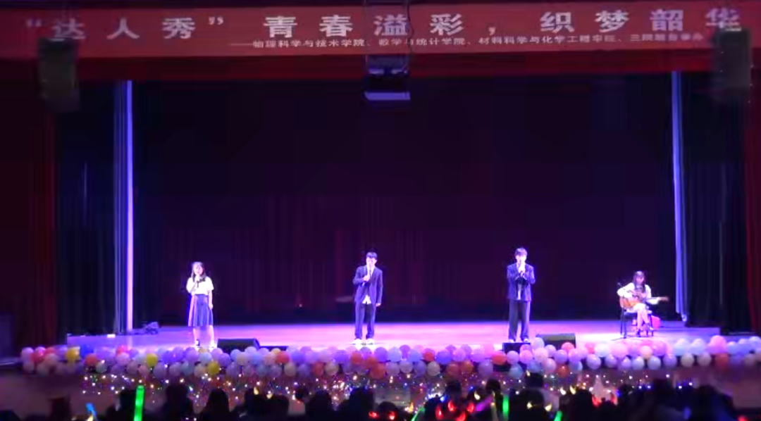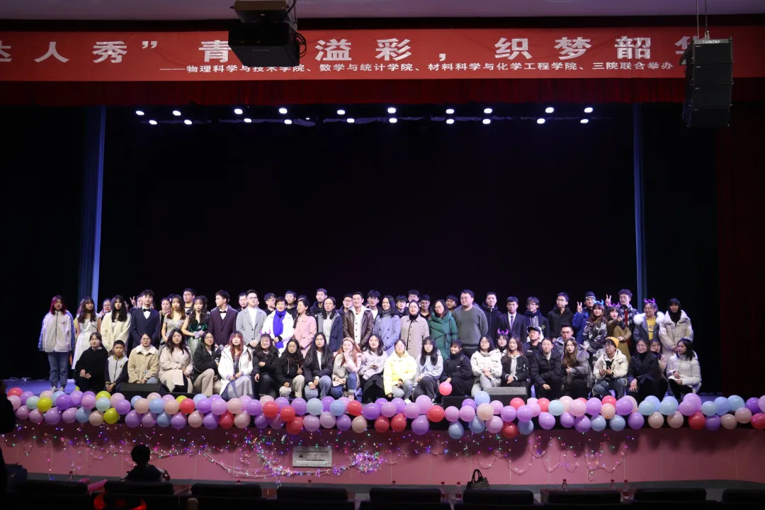 12月18日晚,由材料科学与化学工程学院、物理科学与技术学院、数学与统计学院联合举办的第一届“达人秀”比赛在林杏琴大会堂成功举办。各学院学生工作负责人、辅导员及各院系400余名师生共同观看了本次达人秀。