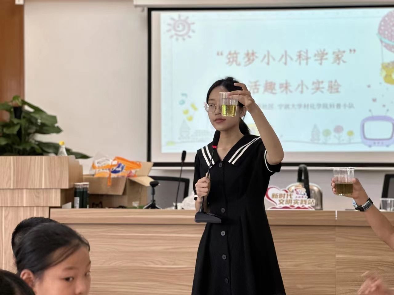 为深入学习贯彻党的二十大精神,普及科学知识,传播科学思想,弘扬科学精神,培育青少年的化学思维和合作精神,努力形成爱科学、学科学、讲科学、用科学的浓郁学习氛围,7月5日——8月3日,宁波大学材料科学与化学工程学院“筑梦小小科学家”蔚蓝科普实践团走进宁波市镇海区汉郡社区,为40多名小朋友开展科普活动。实践团精心设计课程,开展科普知识课外拓展、趣味实验情景剧表演、“自己动手做实验”科学大求真、课业辅导、手工制作等主题活动。