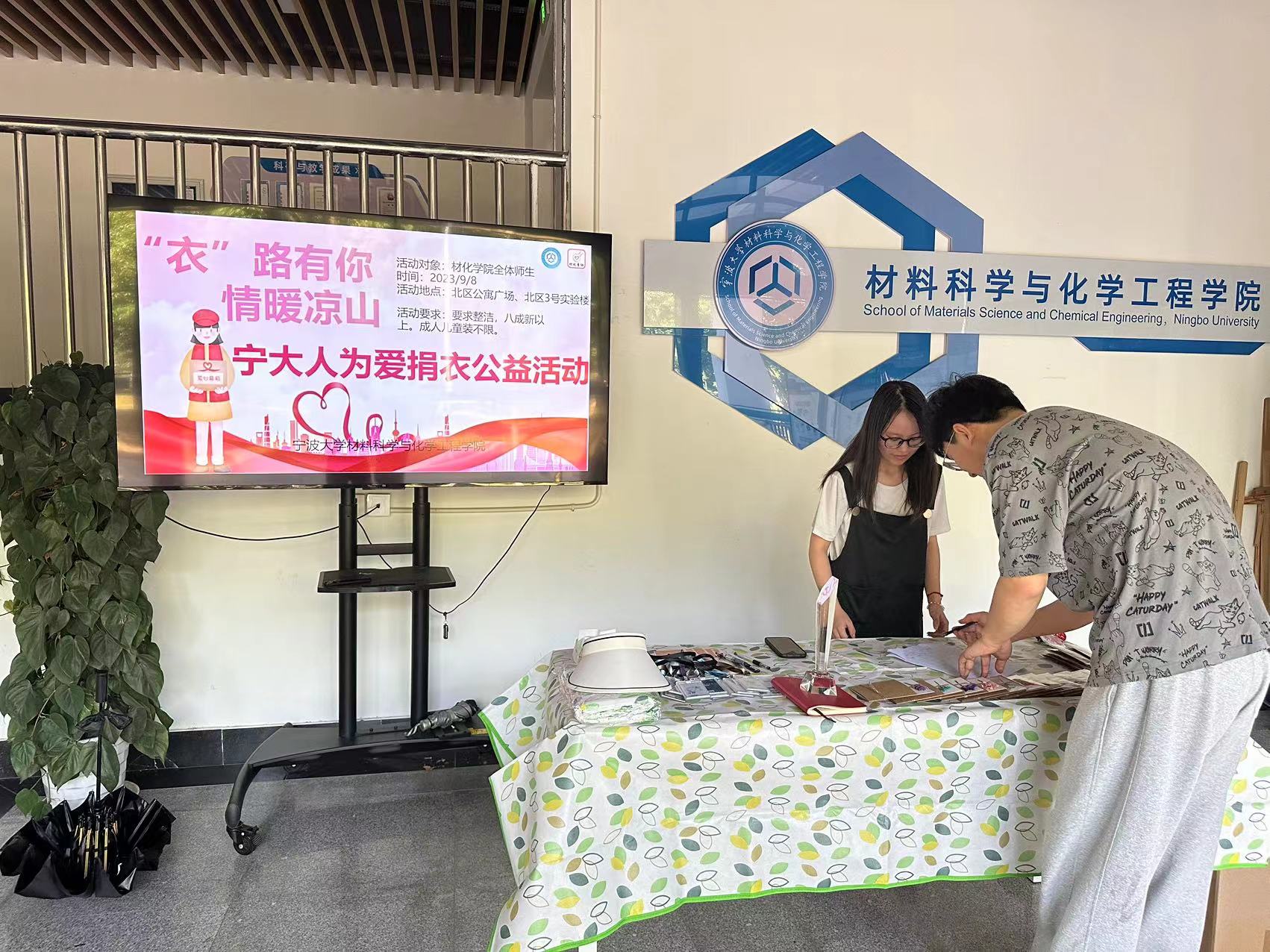 汇涓流而成江海,积小善而成大爱。献一片爱心,送一份温暖。9月8日下午,宁波大学材料科学与化学工程学院联合镇海区新闻中心、镇海二院共同开展“‘衣’路有你,情暖凉山——第十季‘衣’家人”爱心捐衣活动,这也是我院开展此项活动的第3个年头。此次捐赠的衣物将发往四川凉山金阳县、美姑县和昭觉县,为当地需要的居民送去来自宁大的关怀和温暖。
