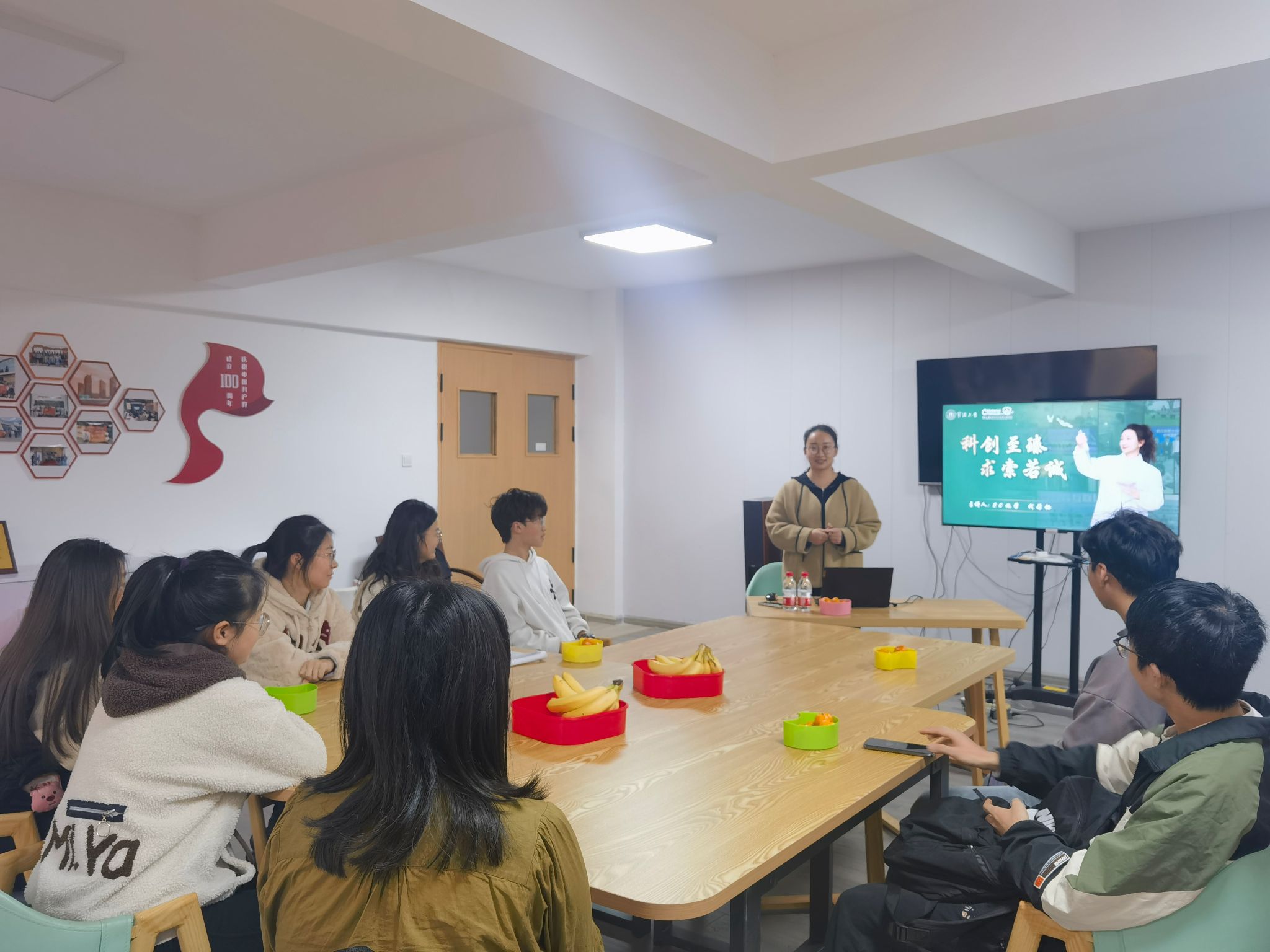 她从自身科创经历作为切入点,向学弟学妹们分享了自己从大一开始进入课题组的科研经历,从发表SCI论文到科创竞赛斩获国家级奖项,在科研求索中不断成长。她结合自身保研经历,给同学们提供了丰富的保研经验,着重分享了学习成绩、科研成果、竞赛获奖与保研流程等方面的心得体会。结合专业课学习,她逐一讲解自己的学习技巧,深入浅出地介绍高效学习的方法,对保研的类型、要求、相关过程也做了详细介绍。最后,她用自己积极参加志愿者服务的亲身体会,勉励学弟学妹们要胸怀国之大者,在服务中点亮自己的人生价值,把论文扎实写在祖国大地上。会后,代若钰同学和师弟师妹们进行了热烈的互动和交流,给同学们解答学习、科研、竞赛等各方面的问题。