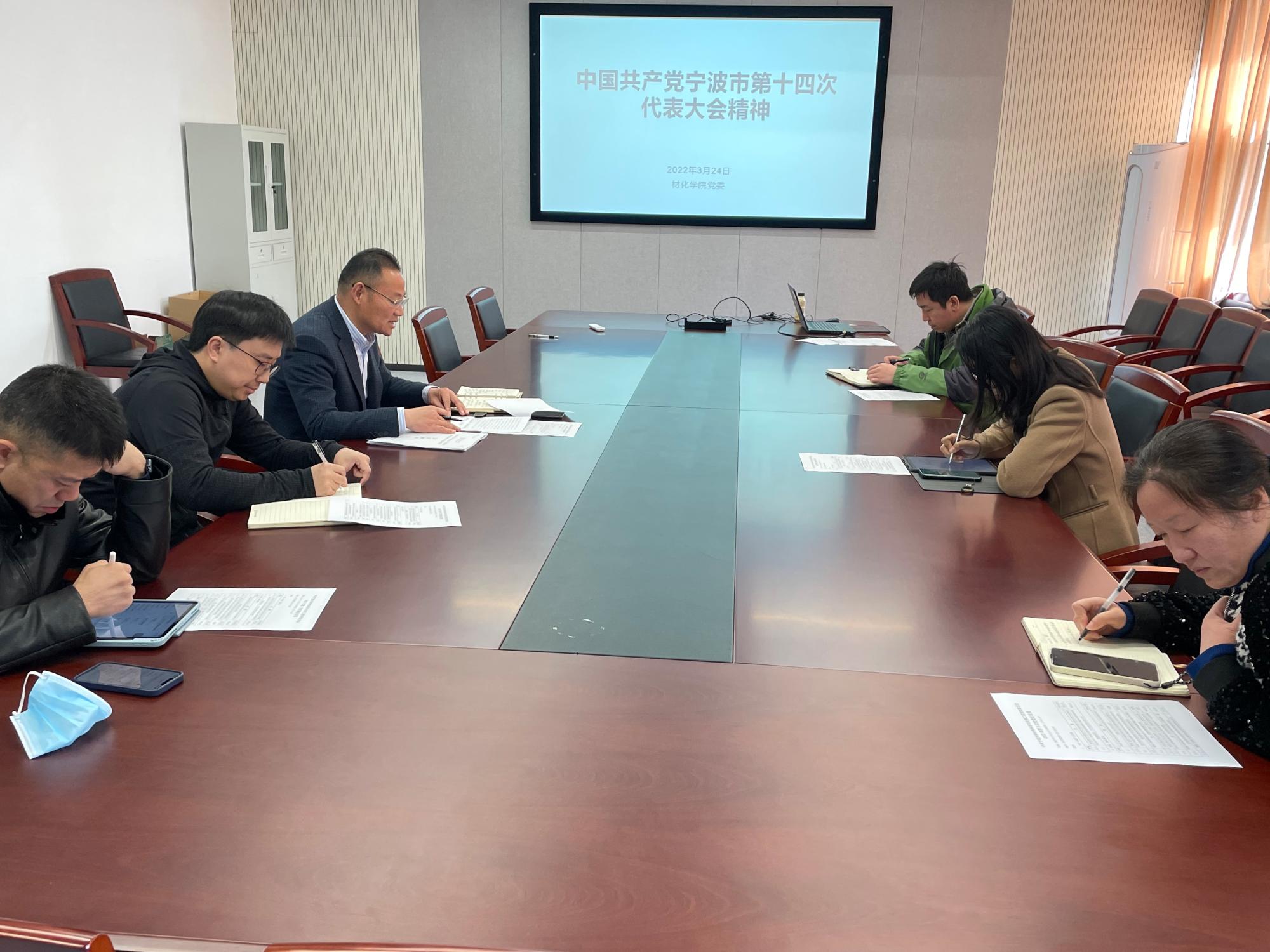 本次党委会“第一议题”学习内容为中国共产党宁波市第十四次代表大会报告。学院党委书记罗云杰针对此次报告作了详细解读。随后,会议传达学习《宁波大学党政领导班子成员开展调查研究实施办法》(宁大党【2022】8号)。