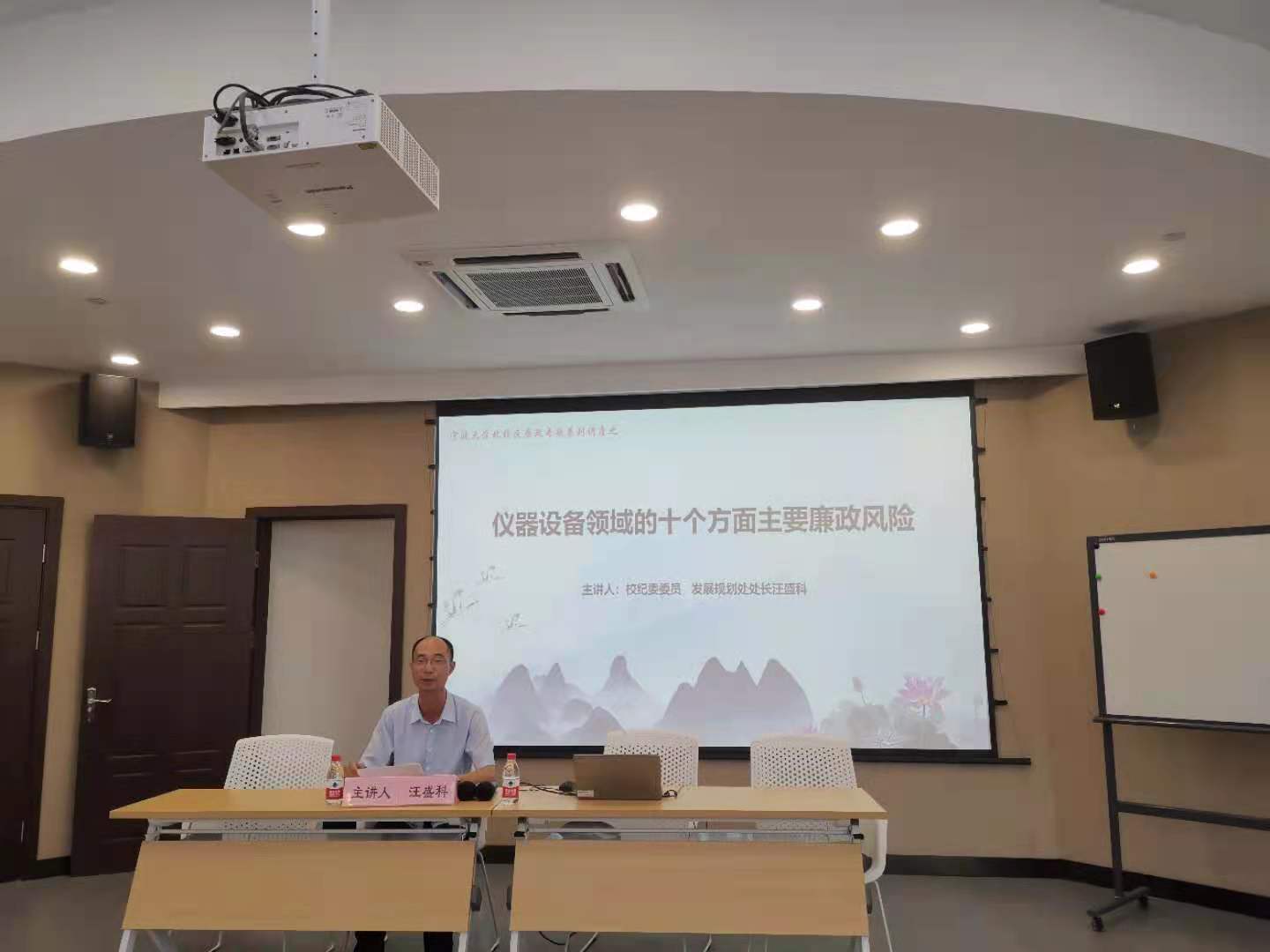 汪盛科从仪器设备的参数设置、采购、论证、验收、使用、管理和处置等环节详细介绍了仪器设备领域的十个廉政风险点,结合工作案例,提出防范的建议与措施,强调仪器设备领域是作为巡视重点关注的领域,其廉政风险不仅仅是利益输送的风险,还包括违反相关规定和程序的风险。