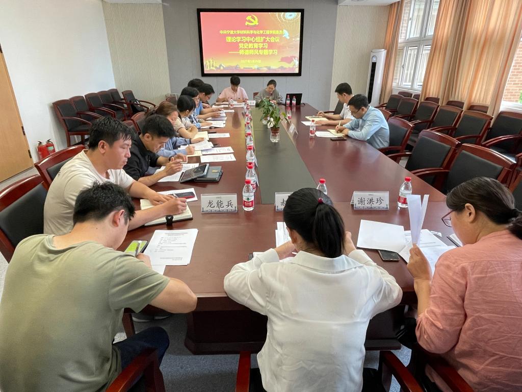 5月26日,材化学院组织召开理论学习中心扩大会议——学习习近平总书记关于师德师风的重要论述摘编。学校党委副书记童晓晖、学校党史学习教育巡回指导组第四组副组长王湖清巡听,学院党委委员和全体教职工党支部书记参加会议。