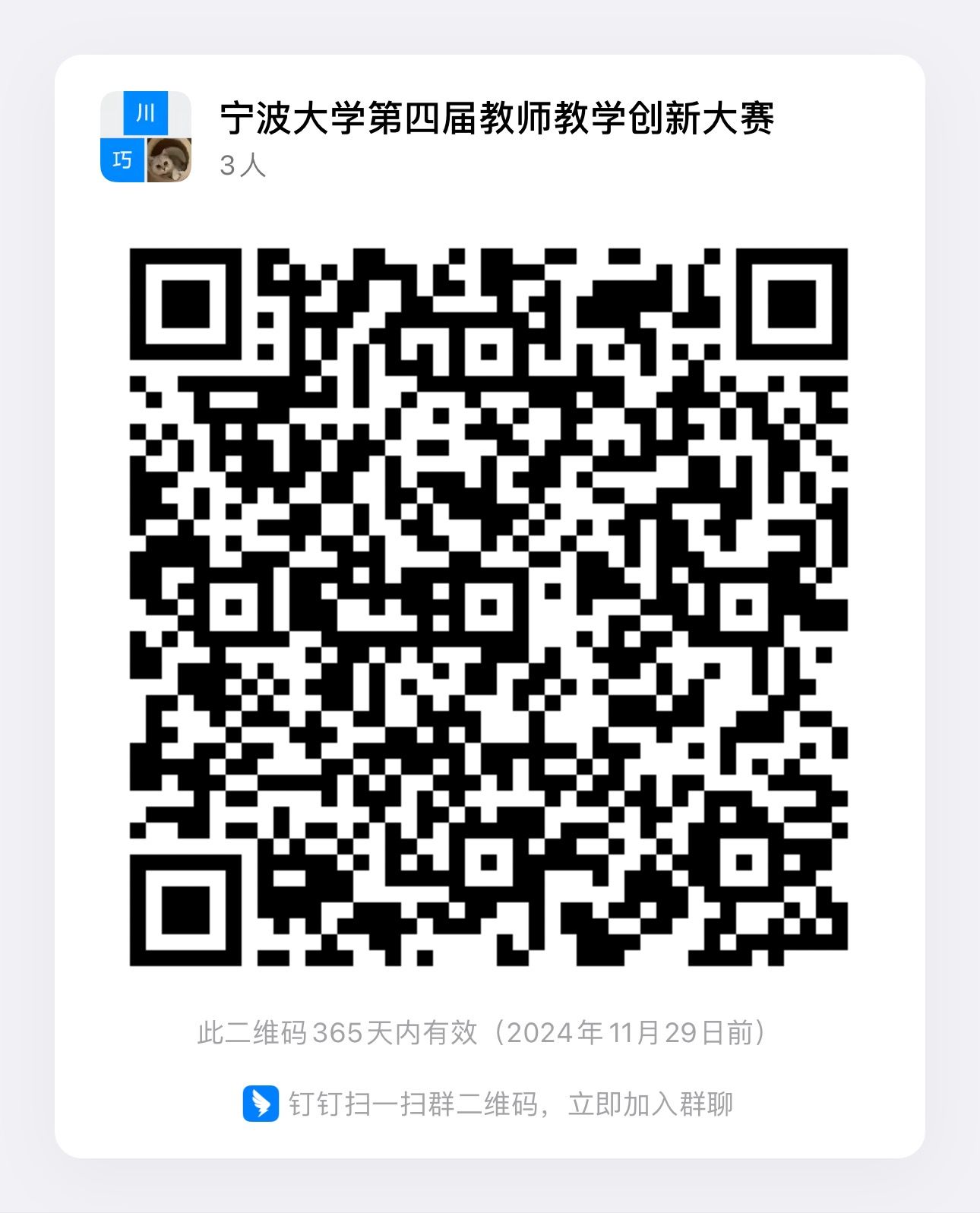 五、参赛教师请加入宁波大学第四届教师教学创新大赛钉钉群(群二维码附后),关于系统使用或者其他比赛相关事宜可以在群里交流。