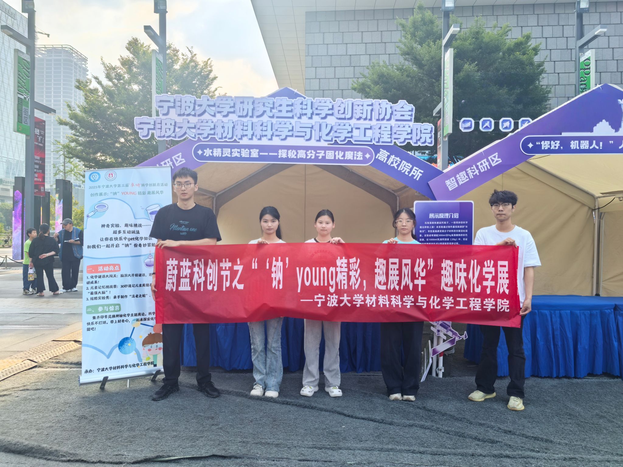 5月24日,2025年宁波市科技活动周开幕式在宁波文化广场举行。材化学院联合宁波大学研究生科学创新协会参与开幕仪式及科创集市,开展“‘钠’young精彩 趣展风华”趣味化学展科普活动,旨在通过趣味实验演示、化学知识问答等形式,展示科技创新最新成果,传播科学精神。