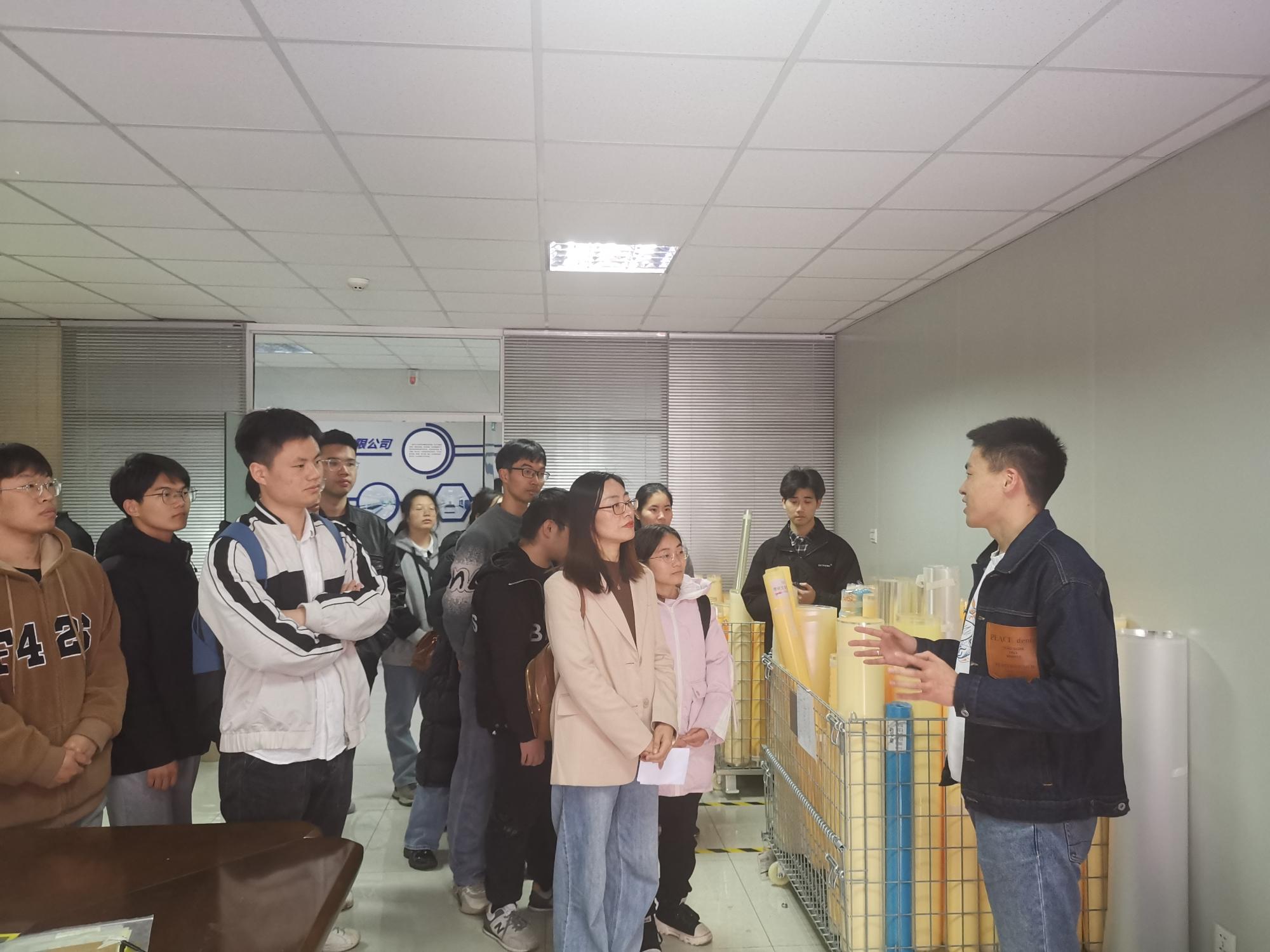 在公司负责人带领下,材化学院一行参观了公司总部研发中心和公司展厅,实地了解公司的发展历程、产品种类、研发流程等情况。随后,校企双方就同学们关注的职业发展路径、公司人才培养体系、产品发展前景等问题进行了深入的座谈交流。