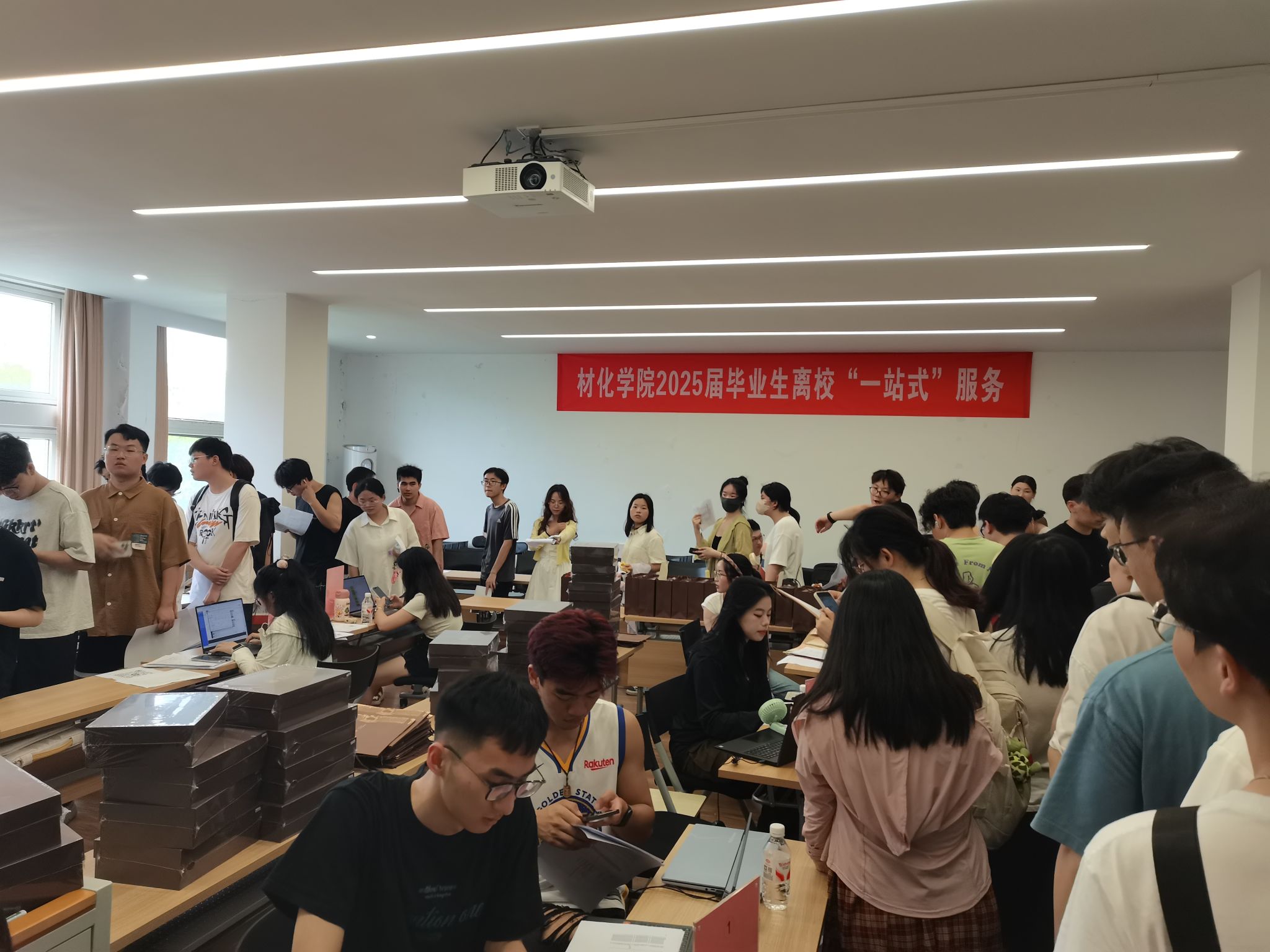 毕业季的骊歌悄然奏响,为给2025届毕业生离校提供更加便捷、高效的服务,材化学院于6月20日和23日在北区逸夫材化楼北楼1225教室精心组织开展了离校“一站式”服务活动,全力为毕业生的毕业之旅保驾护航。