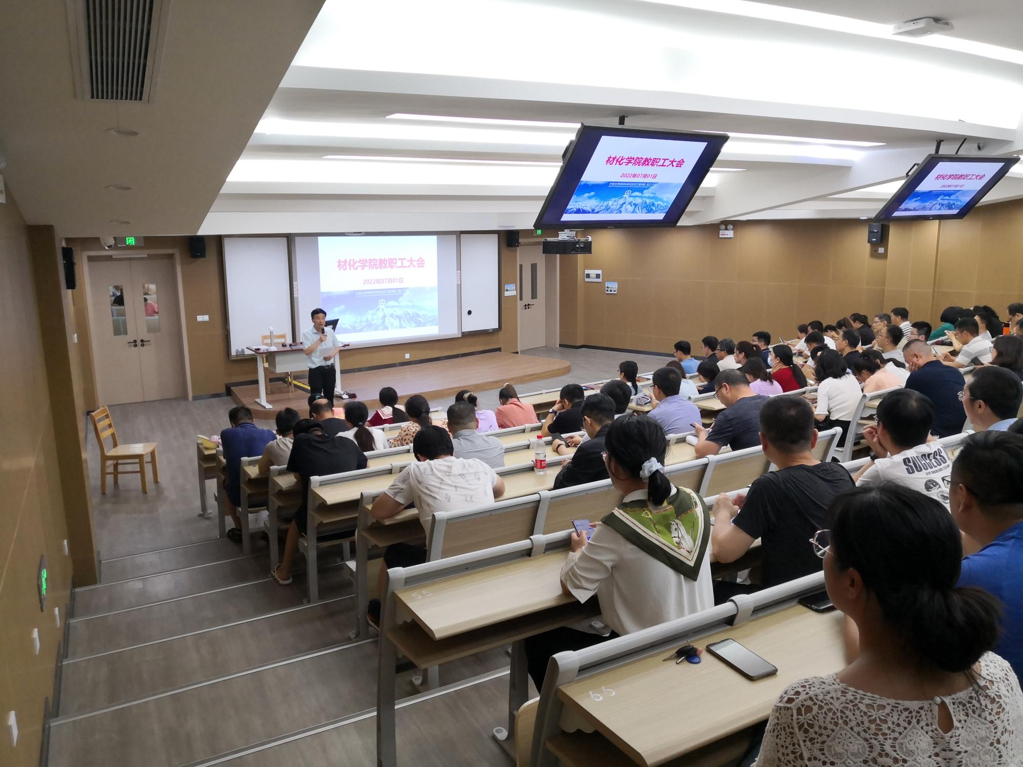 7月1日下午,材化学院召开全院教职工大会,学院党政班子全体成员及学院全体教职工参加了会议。