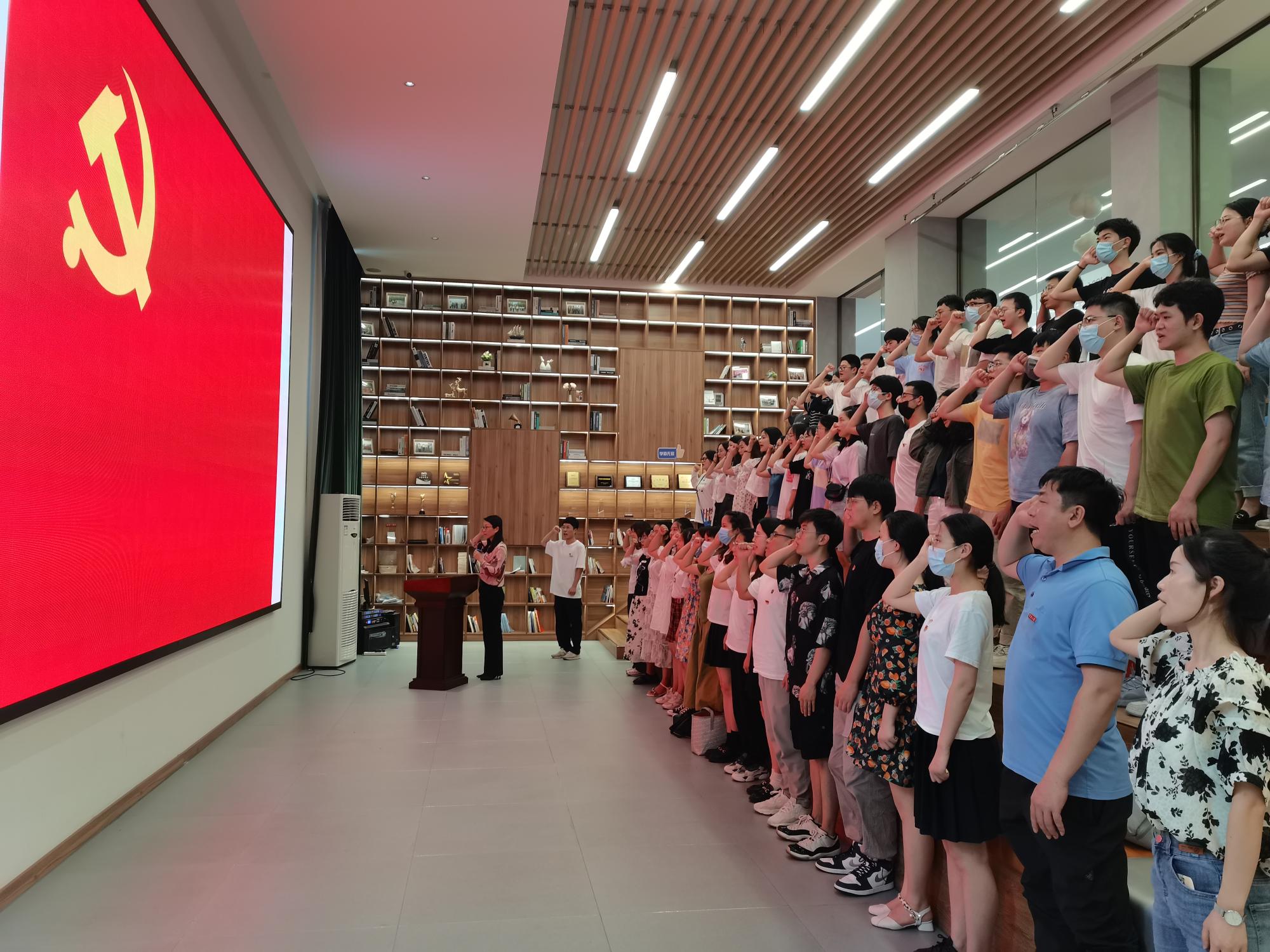 在即将离校和马上奔赴工作岗位的特殊时刻,读书会首先开展了重温入党誓词活动,全体毕业生党员们高举右拳,庄严宣誓,再次感受肩上的责任与使命。