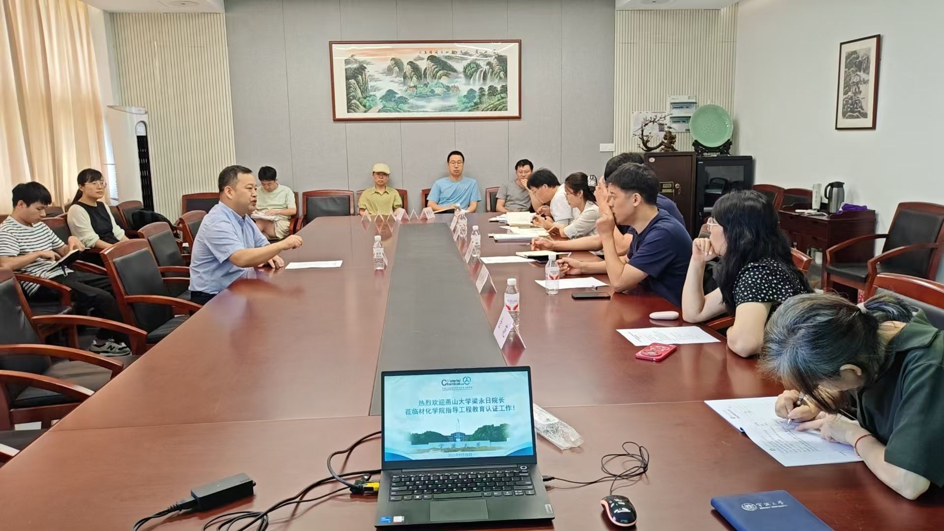2025年9月25日中午,燕山大学材料科学与工程学院梁永日教授来到我院进行工程教育认证工作交流,李砚硕院长及我院认证工作相关老师参加了座谈交流,会议由赵传壮老师主持。