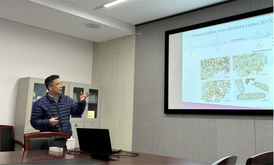 2023年12月28日上午10:00,著名化学家香港城市大学张其春教授应邀到材料科学与化学工程学院做题为《Covalent Organic Frameworks as Promising Platforms for Diverse Applications》的学术报告。报告在北校区1号实验楼227会议室举行,由材化学院韩磊老师主持,学院相关专业的教师和研究生参加。