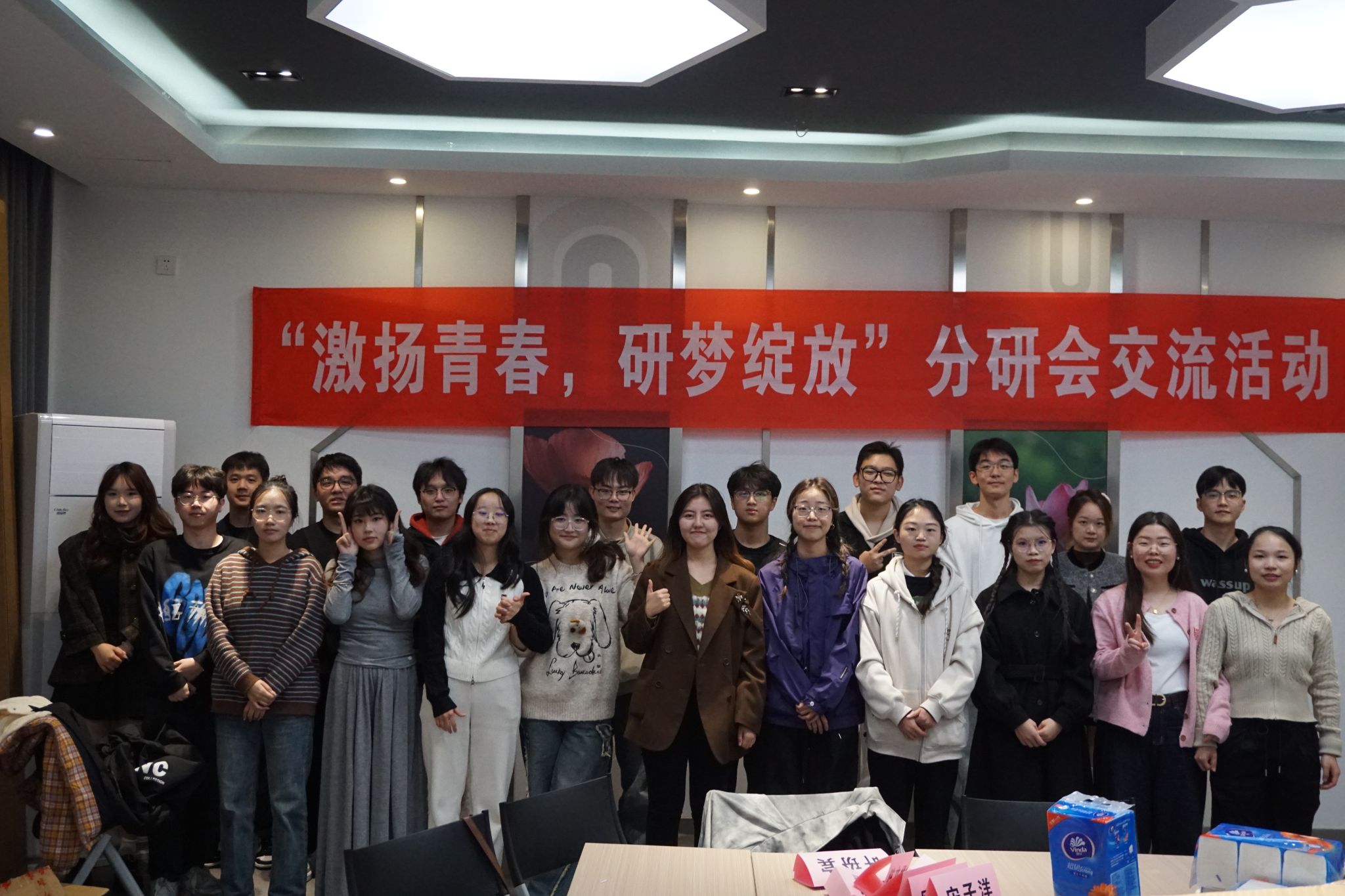 研究生会与法学院研究生会在法学院大楼414室联合举办了以“激扬青春,研梦绽放”为主题的跨学院工作交流活动。
