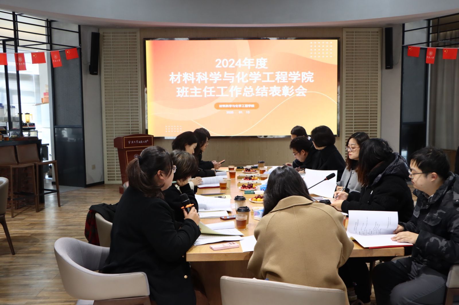 2024年度班主任工作总结表彰会在校友之家顺利举行。院党委书记陶娟、全体班主任及学工办、教务办、科研办相关负责老师参加会议。会议由院党委副书记尹慧主持。