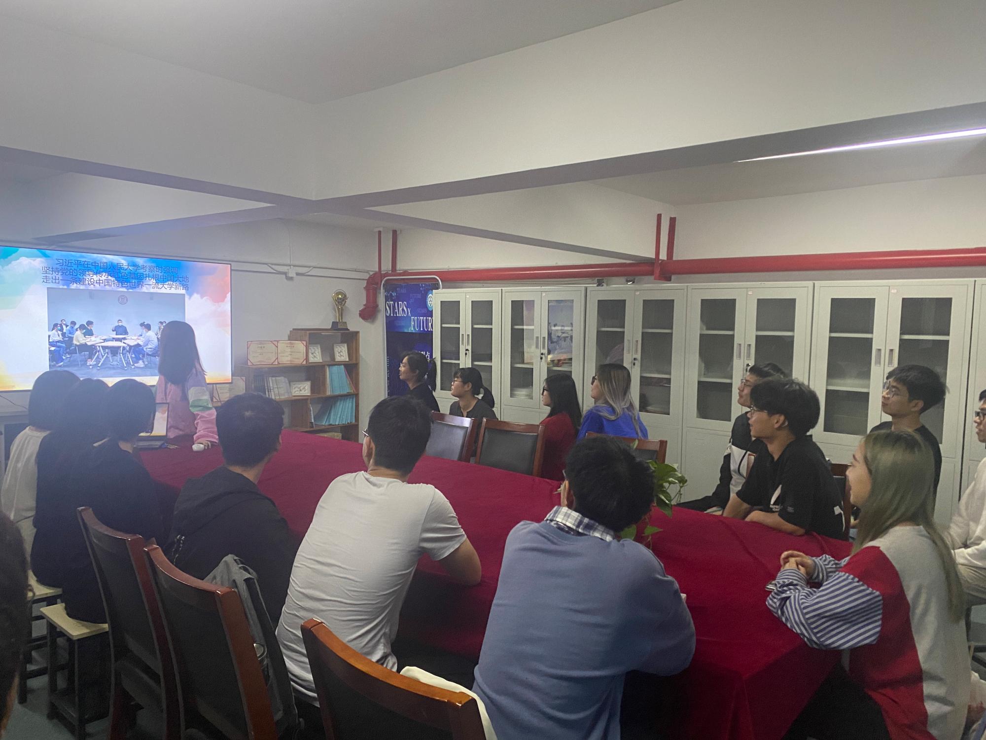 院党委副书记朱燕向团员青年传达重要讲话精神,“习近平总书记在五四青年节即将到来之际考察了中国人民大学,既是对广大青年的节日祝贺,也是对大学思政工作提出殷切期望。对于身处一线的思政工作者来说,备受教育和鼓舞。接下来,我们将认真贯彻落实习近平总书记重要指示精神,紧密结合学院实际,创造性开展思想政治工作,引导广大青年做社会主义核心价值观的坚定信仰者、积极传播者、模范践行者。”