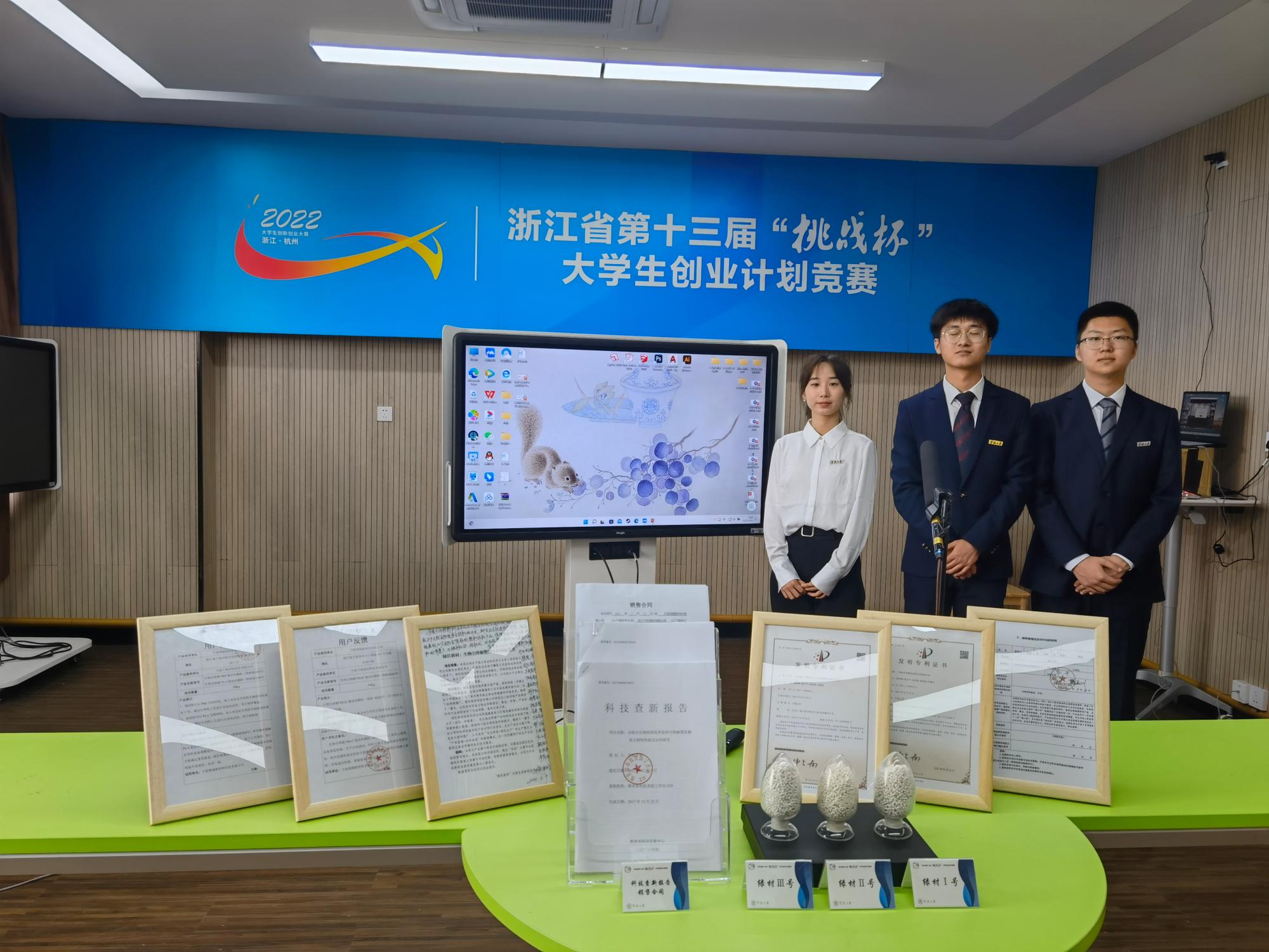 最后,我院吴鲁康、翟一赞等同学参与的项目《陶逆科技——车用逆变材料领航者》获得城市治理和社会服务组金奖,由孔英祺、张家溪等同学参与的项目《争做不“塑”之客——生物全降解产品原料开拓者》以及由吕沛、董雪婧等同学参与的项目《隽研科技——高效脱氮污水处理专家》获得生态环保和可持续发展组银奖。